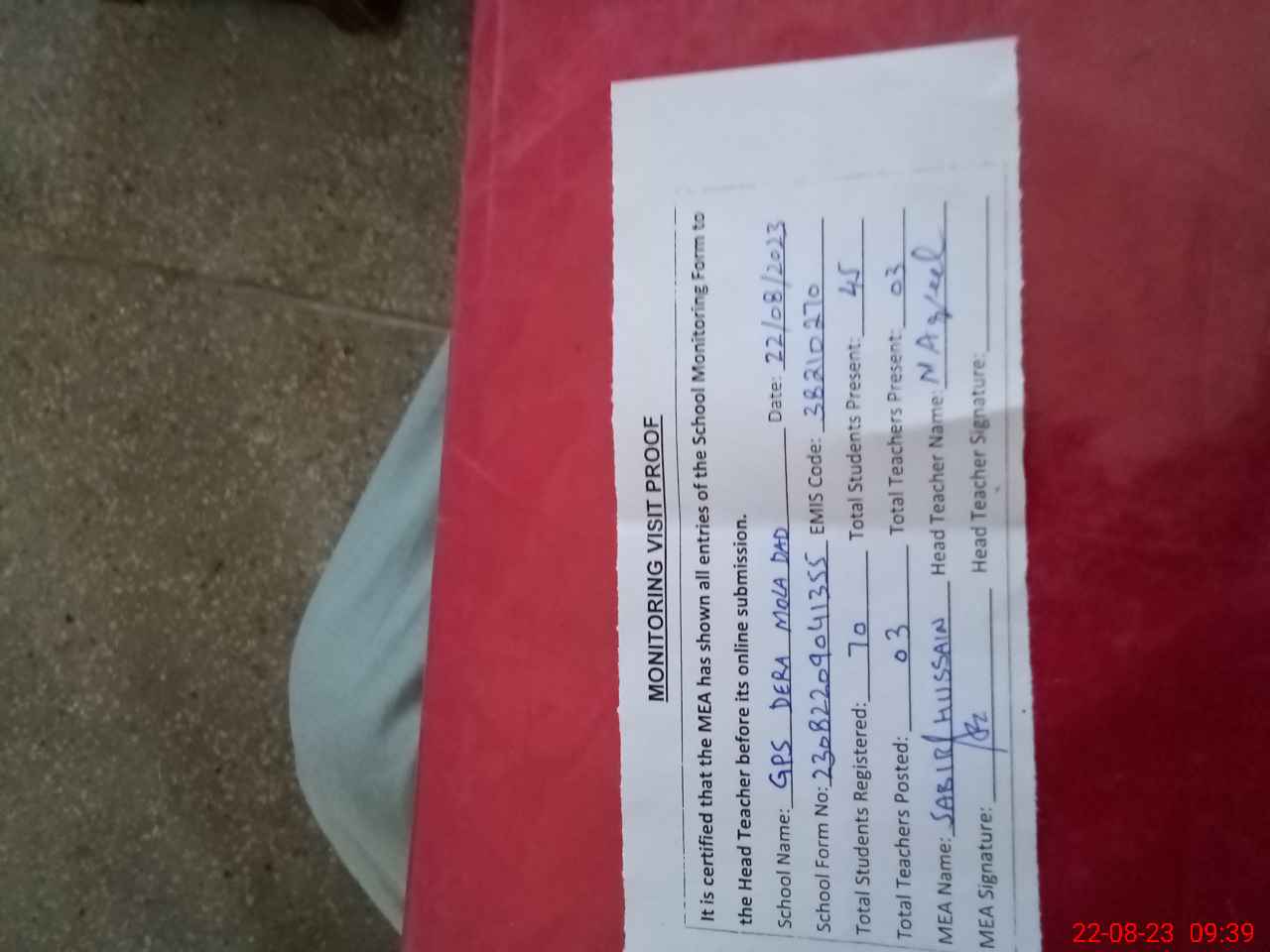 | EMIS Code: 38210270 | Name of School: GPS DERA MOLADAD | |||