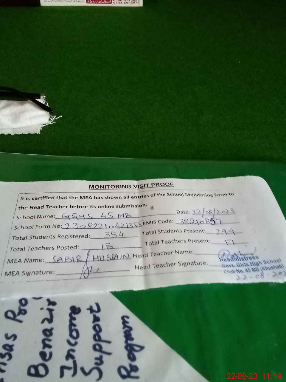 | EMIS Code: 38210857 | Name of School: GGHS CHAK NO 45 MB | |||