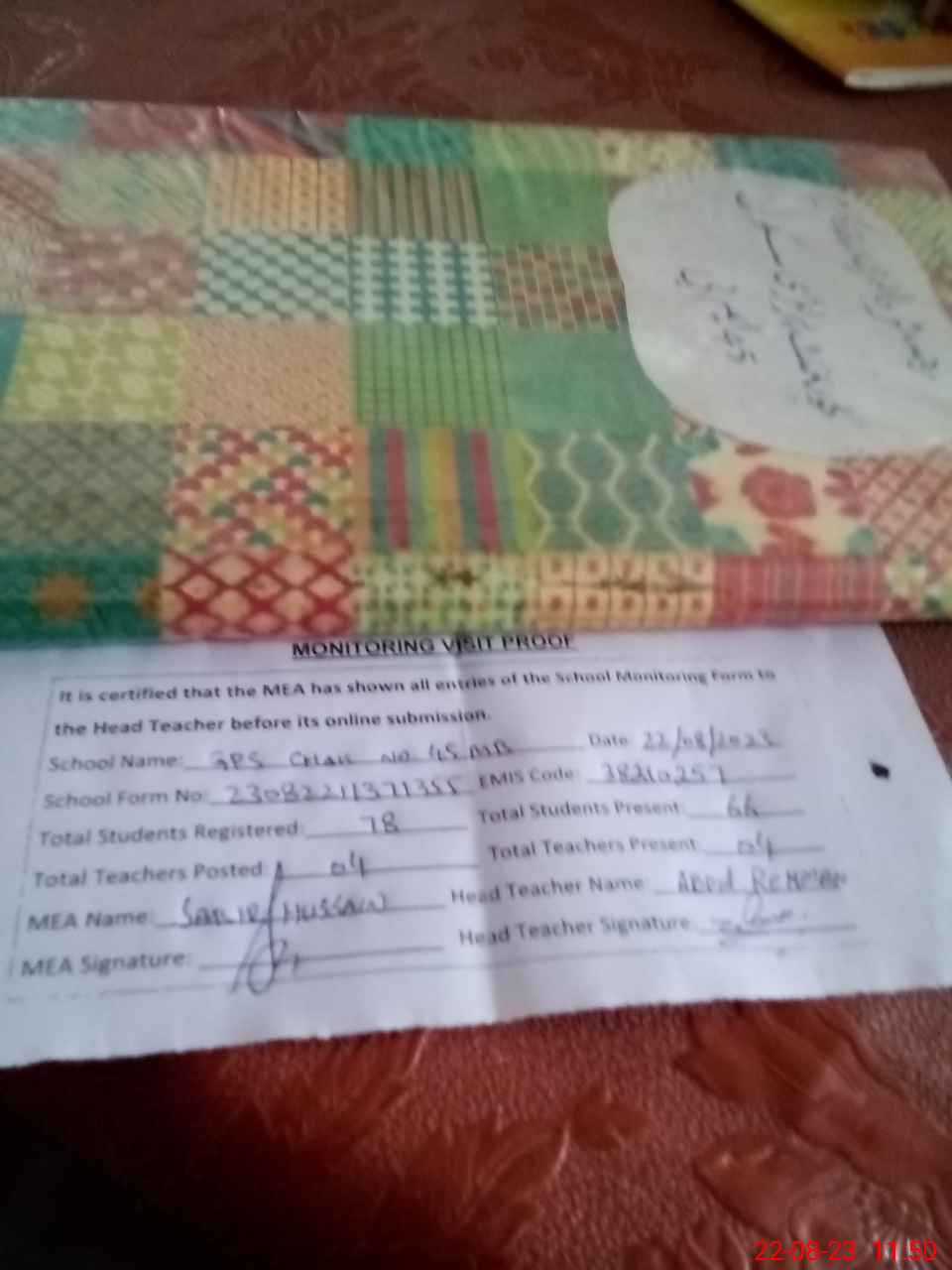| EMIS Code: 38210257 | Name of School: GPS CHAK NO 45 MB | |||