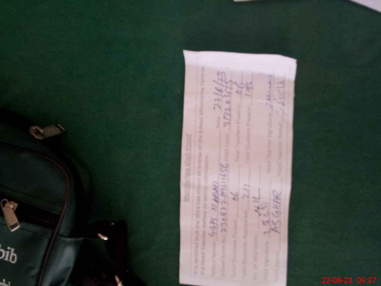 | Monitoring Date: 22-08-2023 | Start Time: 22-08-2023 08:41 AM | End Time: 22-08-2023 09:28 AM | Name of MEA: Mu**** As**** Sh**** | |
