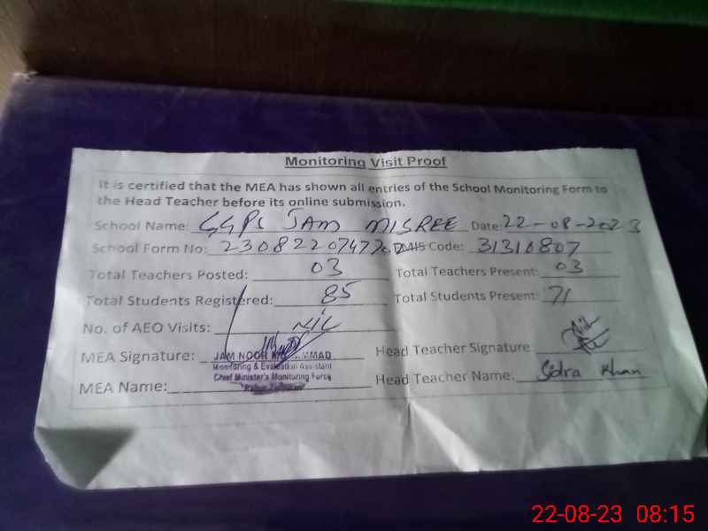 | EMIS Code: 31310807 | Name of School: GGPS JAM MISREE | |||