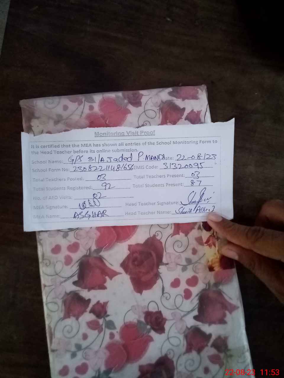 | EMIS Code: 31320095 | Name of School: GPS PAKKI MANDI 31/A JADEED | |||
