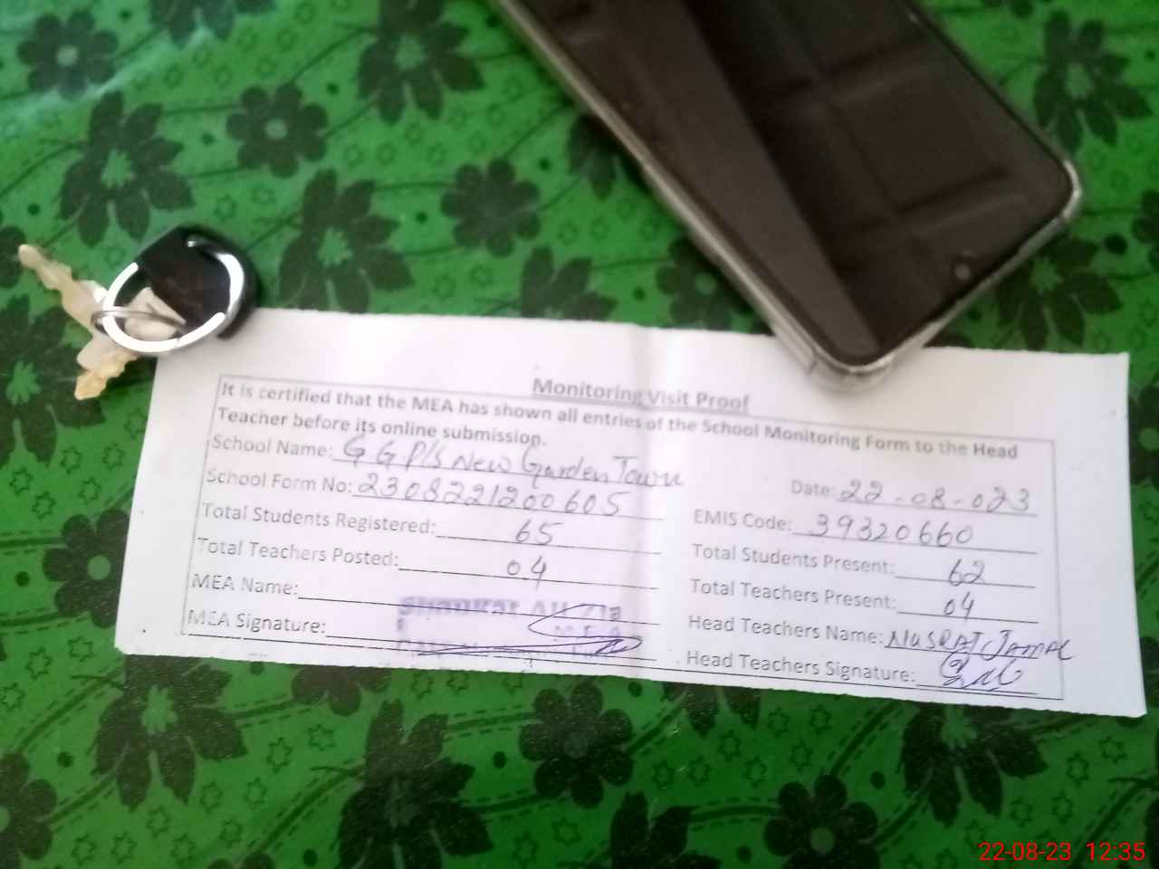 | Attendance Register | Head Teacher | MEA with School | Visit Proof |