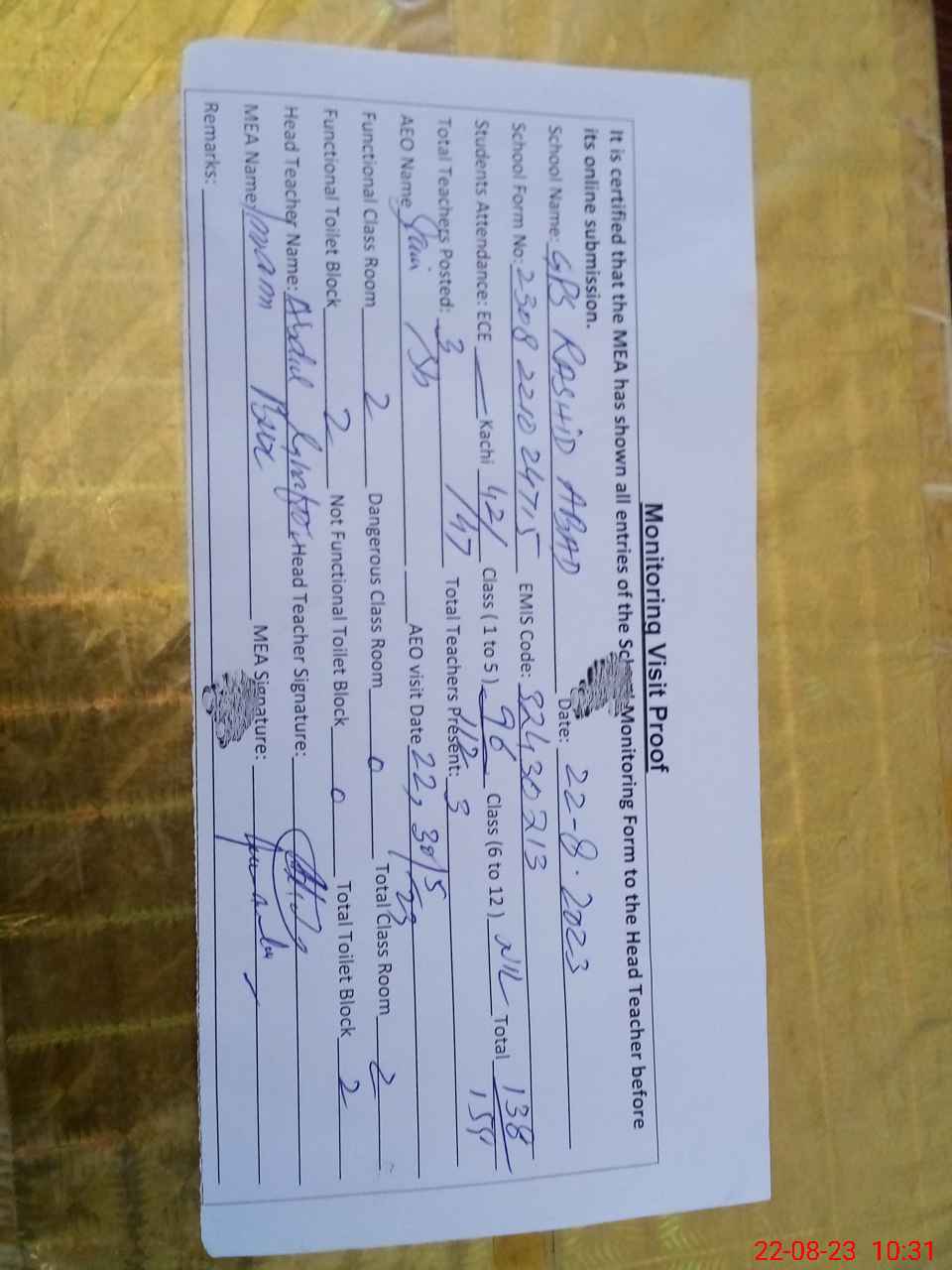 | EMIS Code: 32430213 | Name of School: GPS RASHID ABAD | |||