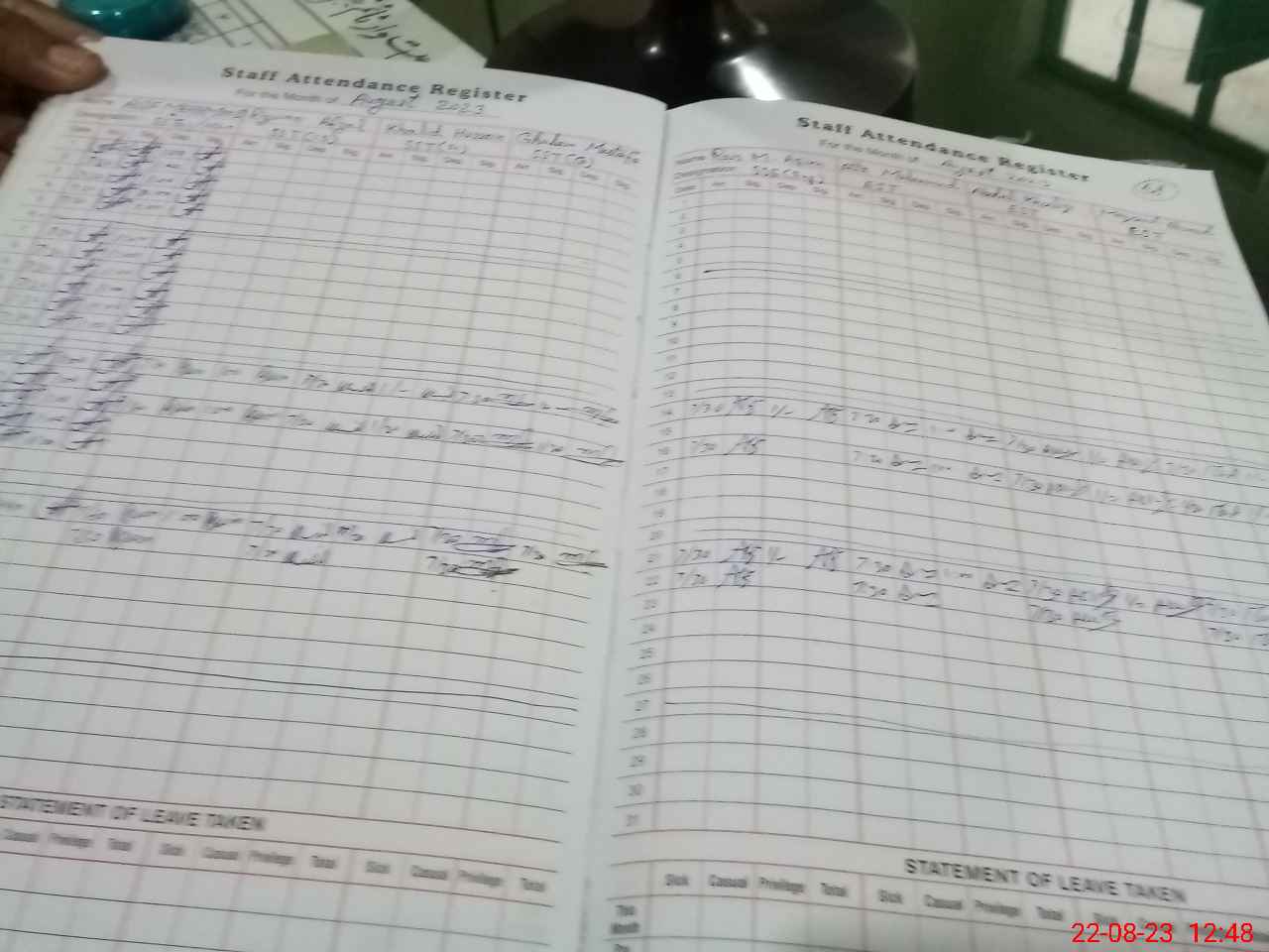 | Leave | Duty | Absent | Maternity | Medical | Ex- Pak |