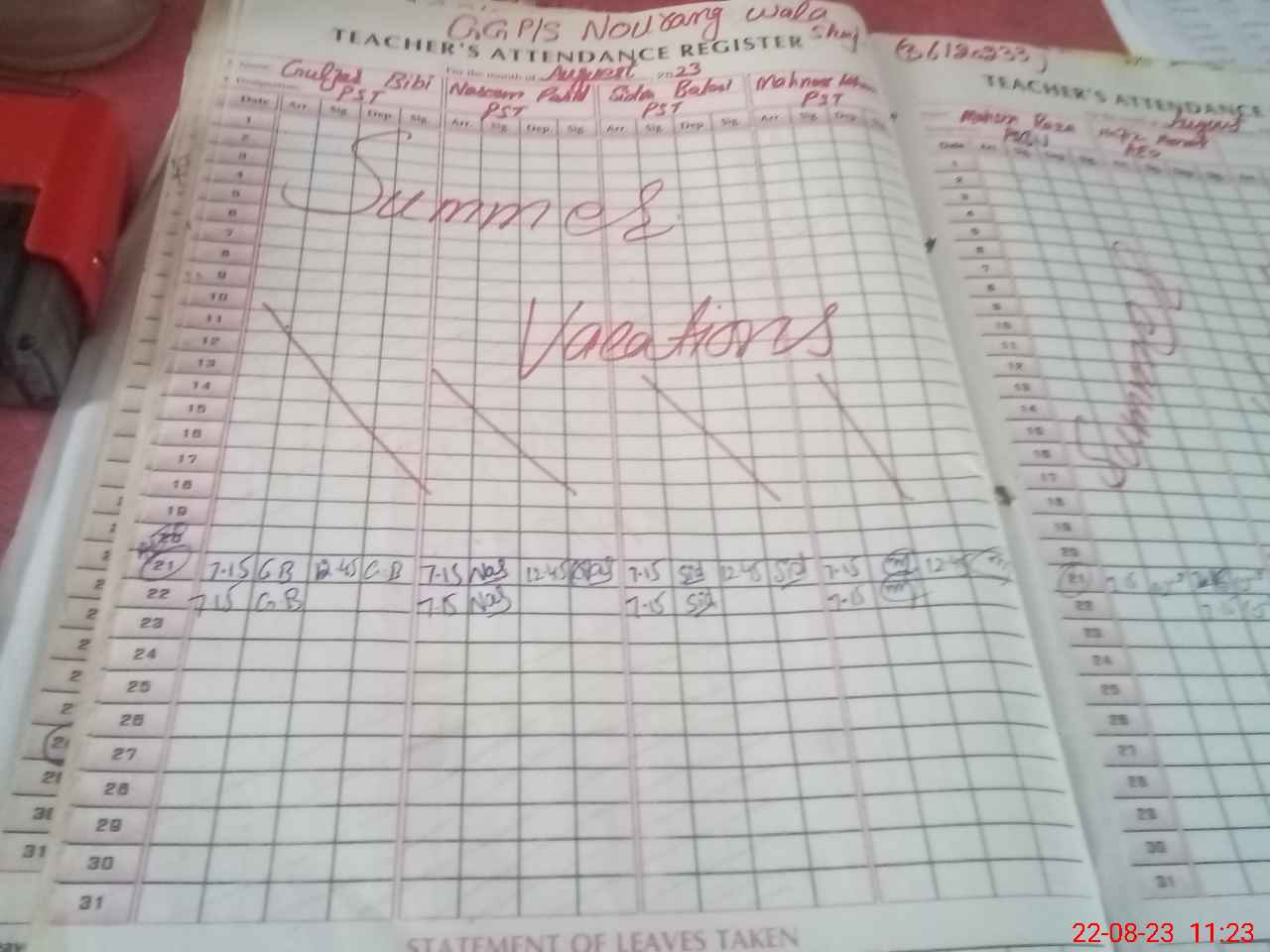 | Attendance Register | Head Teacher | MEA with School | Visit Proof |