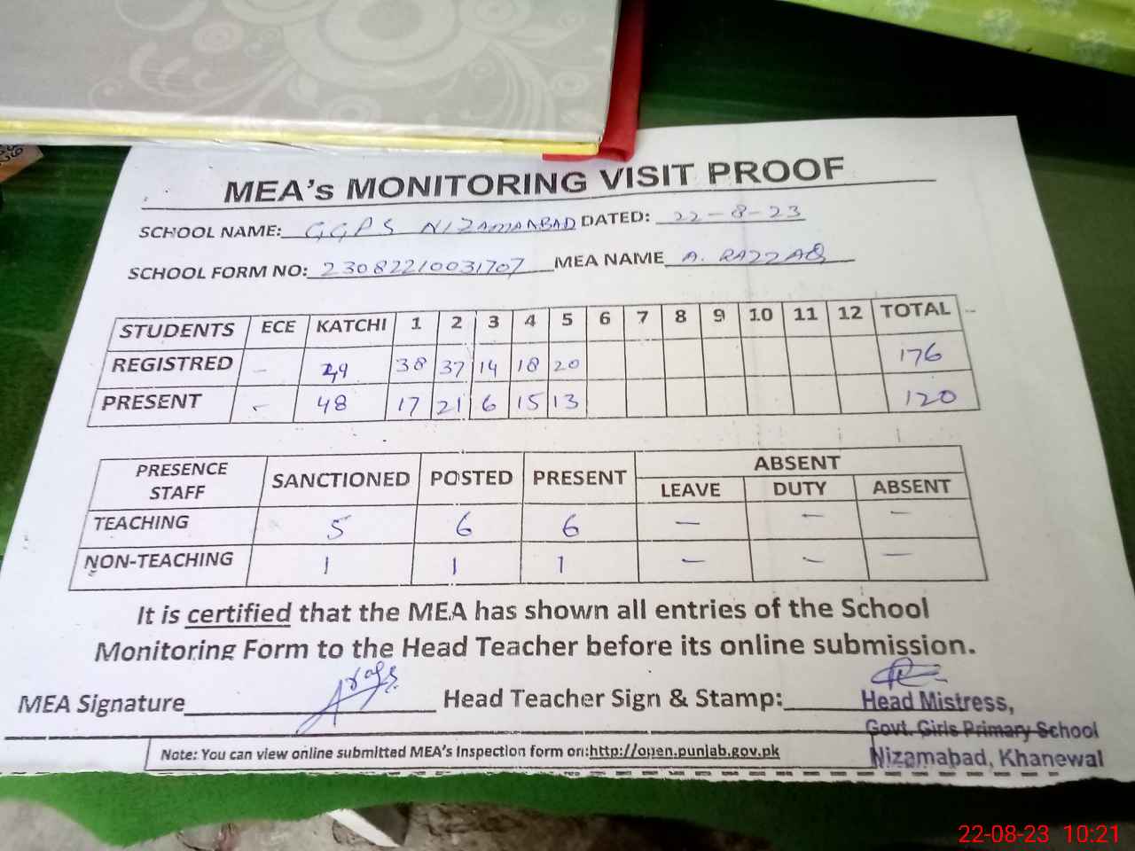 | EMIS Code: 36420349 | Name of School: GGPS NIZAM ABAD, KHANEWAL | |||