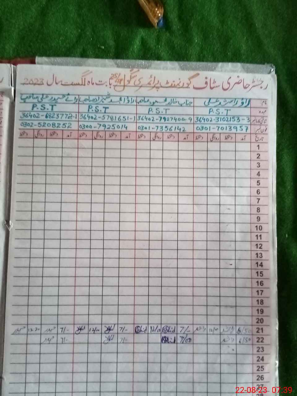 | Name: RA**** AL**** Designation: (School Headmaster's/Headmistress's) PST Phone/Cell Number: 03**** |