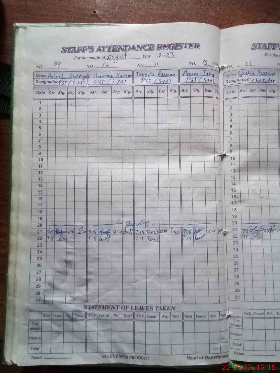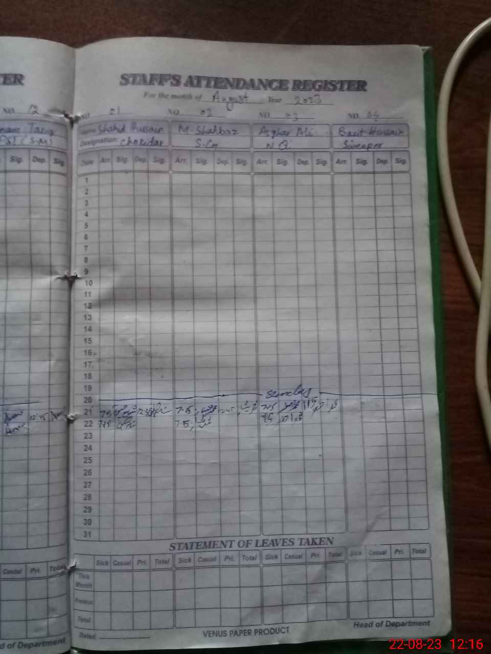 | 35**** | Ba**** Hu**** | SWEEPER | Contract | 0 | 0 | 31 | 0 | 0 | 0 | 0 | 0 | 0 | Absent (Un-Authorized) |