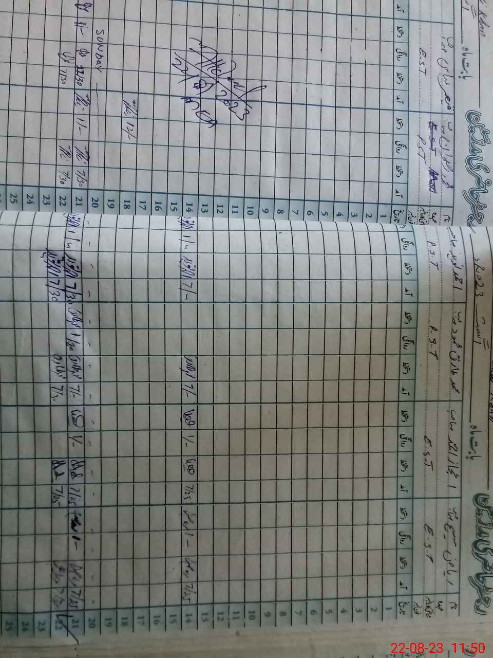 | CNIC | Full Name | Designation | R/C | Absence During Last Calender Month |