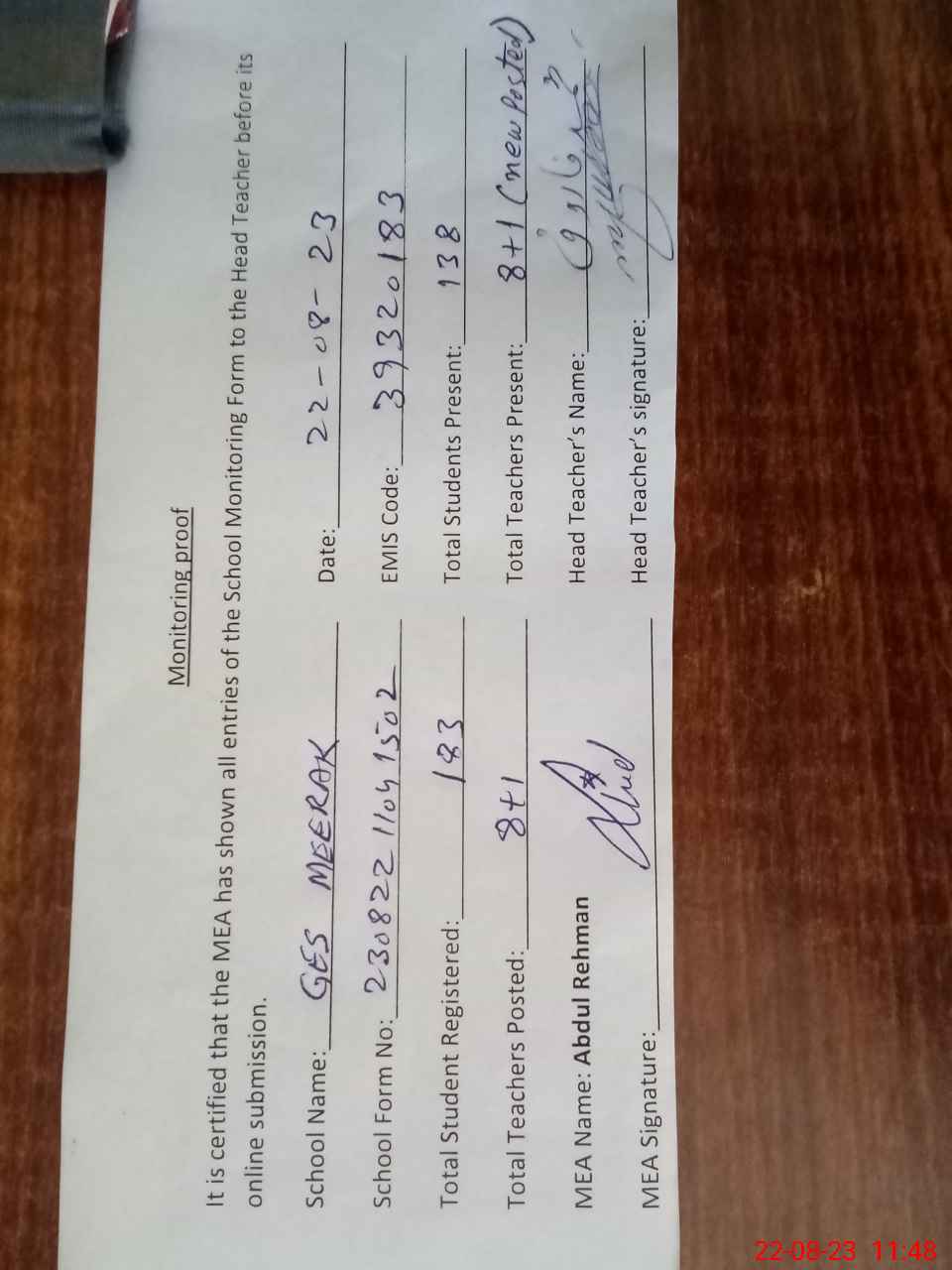 | EMIS Code: 39320183 | Name of School: GES MEERAK | |||