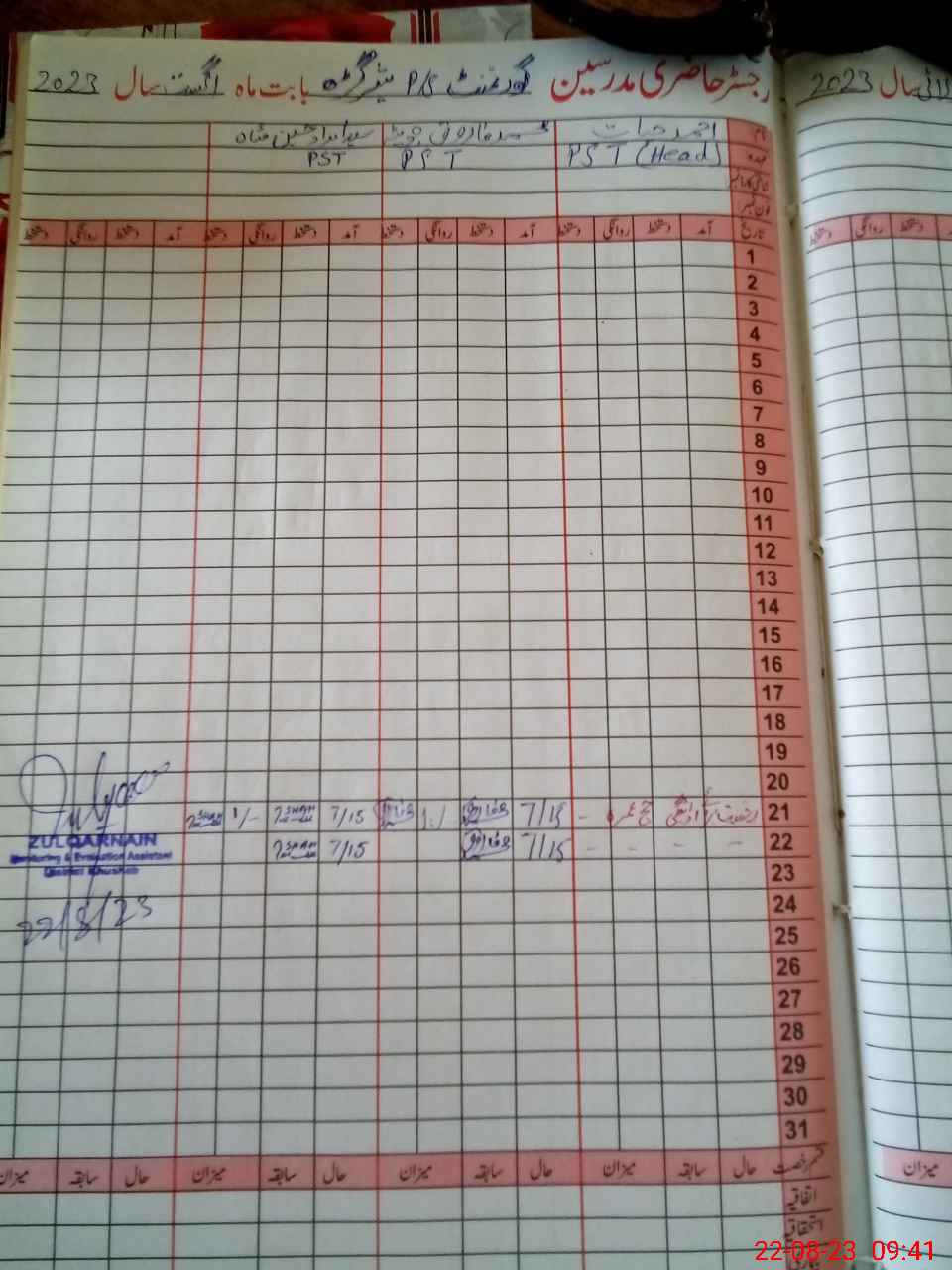 | Name: AH**** HA**** Designation: (School Headmaster's/Headmistress's) PST Phone/Cell Number: 03**** |