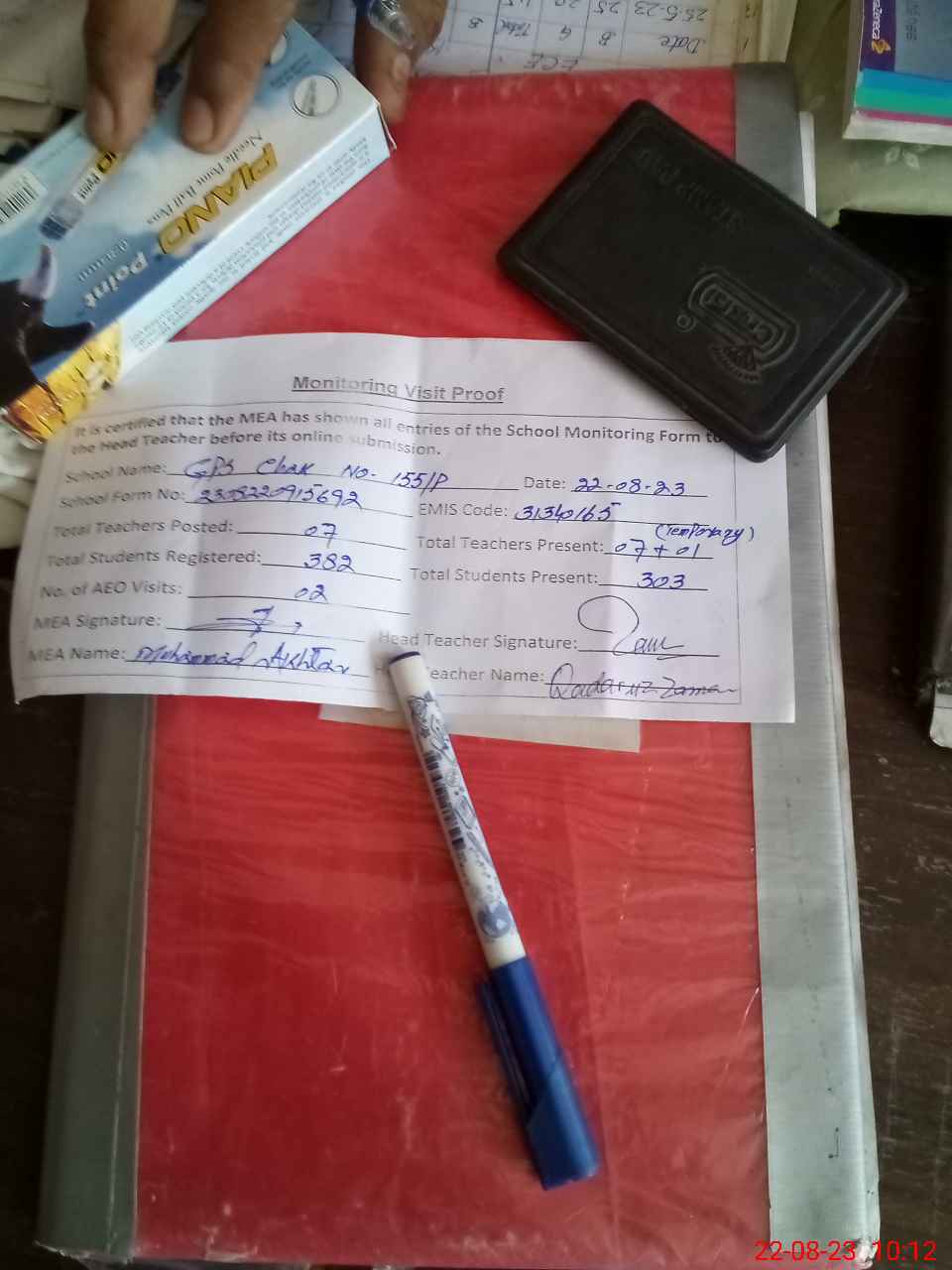 | Attendance Register | Head Teacher | MEA with School | Visit Proof |