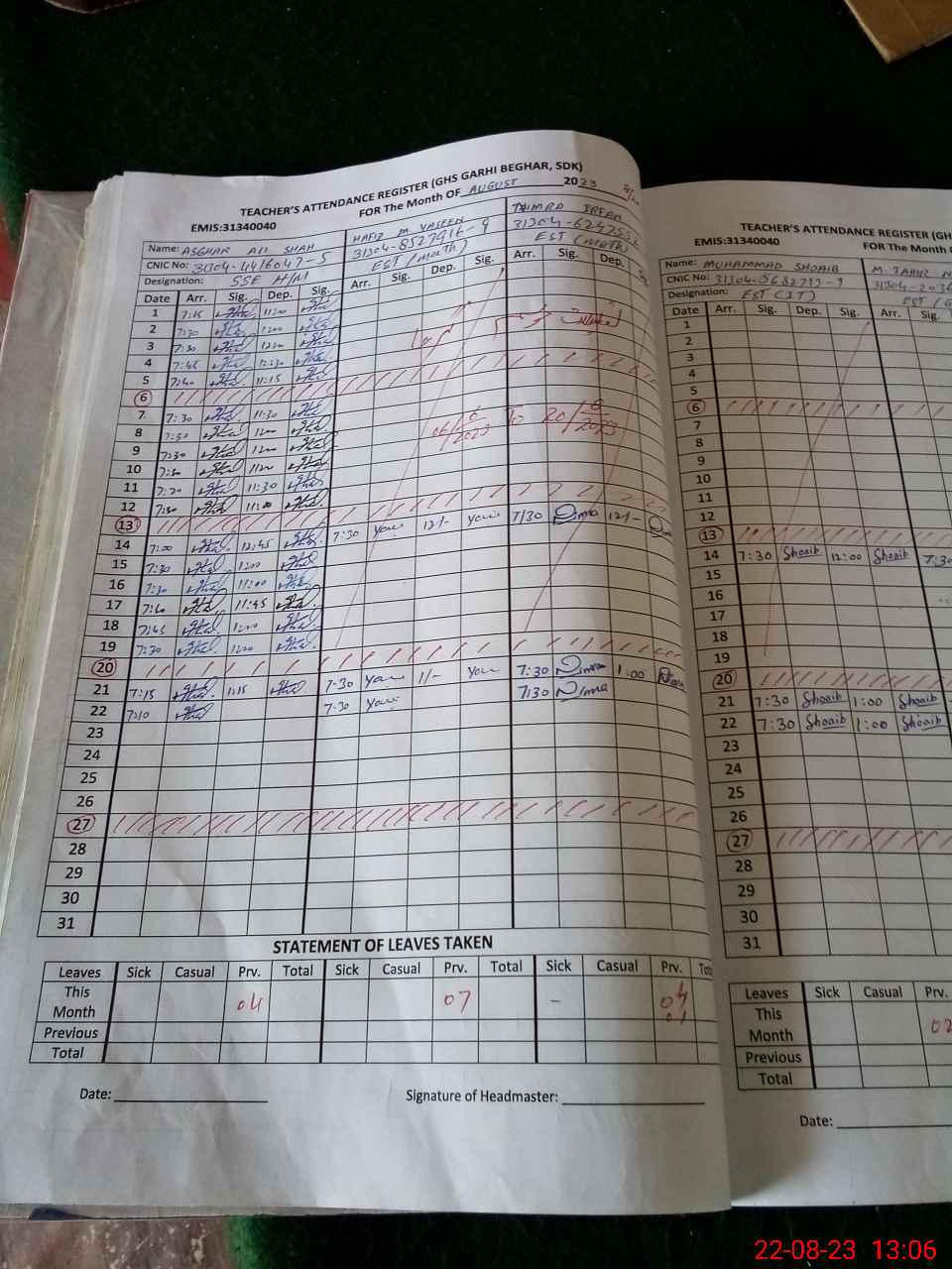 | Name: As**** Al**** Sh**** Designation: (School Headmaster's/Headmistress's) S.S E Phone/Cell Number: 03**** |