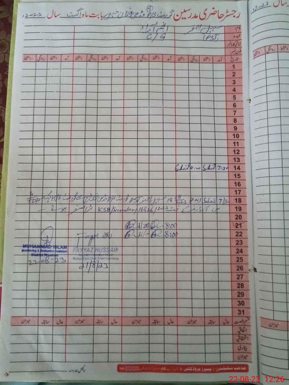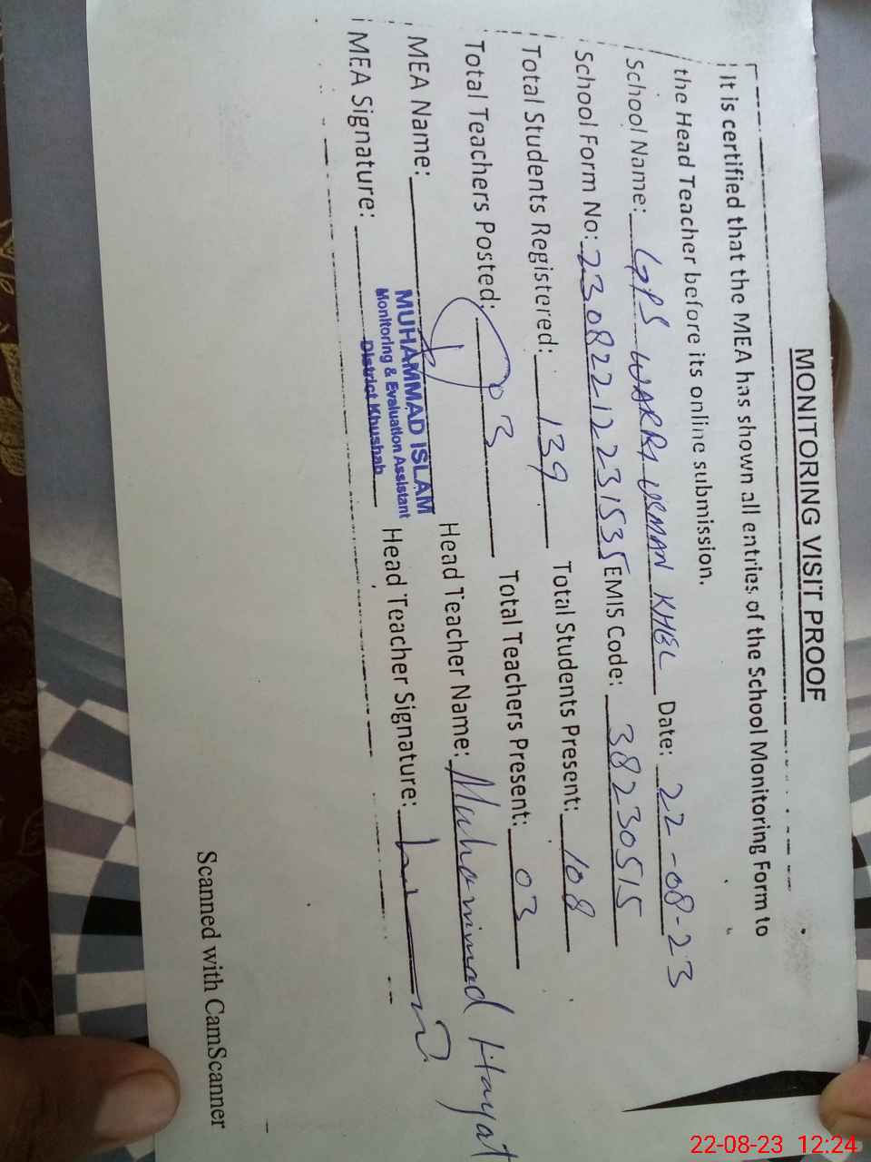 | Name: MU**** HA**** Designation: (School Headmaster's/Headmistress's) P ST Phone/Cell Number: 03**** |