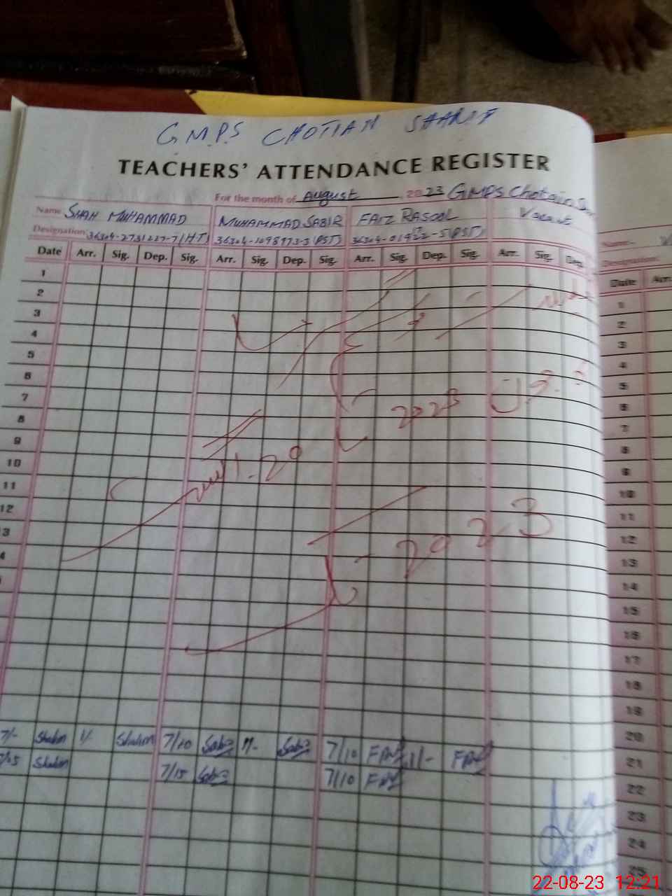 | Name: Sh**** Mu**** Designation: (School Headmaster's/Headmistress's) PST/PTC/JV Phone/Cell Number: 03**** |