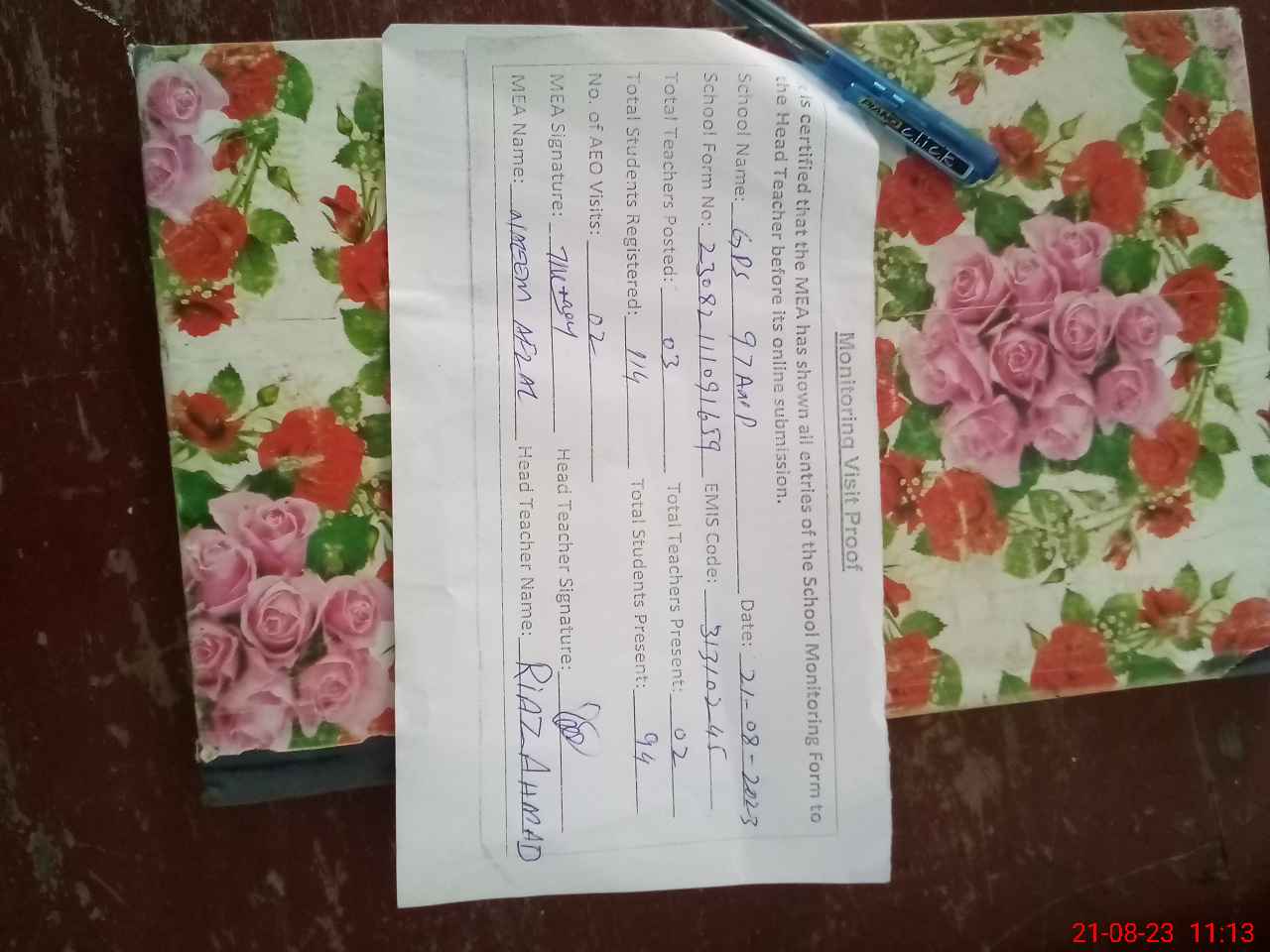 | EMIS Code: 31310245 | Name of School: GPS CHAK NO 97 ANP | |||