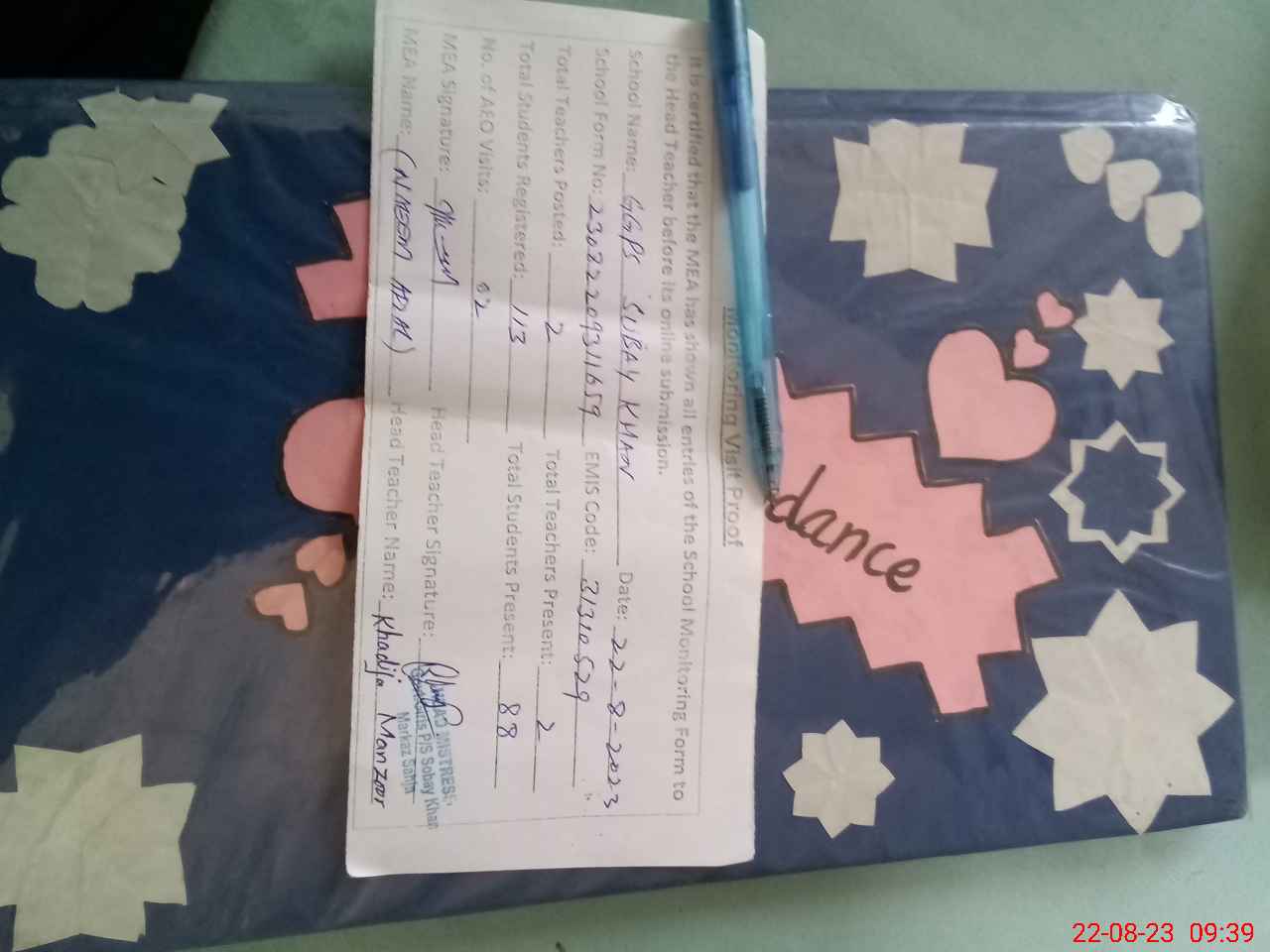 | EMIS Code: 31310529 | Name of School: GGPS SUBAY KHAN | |||