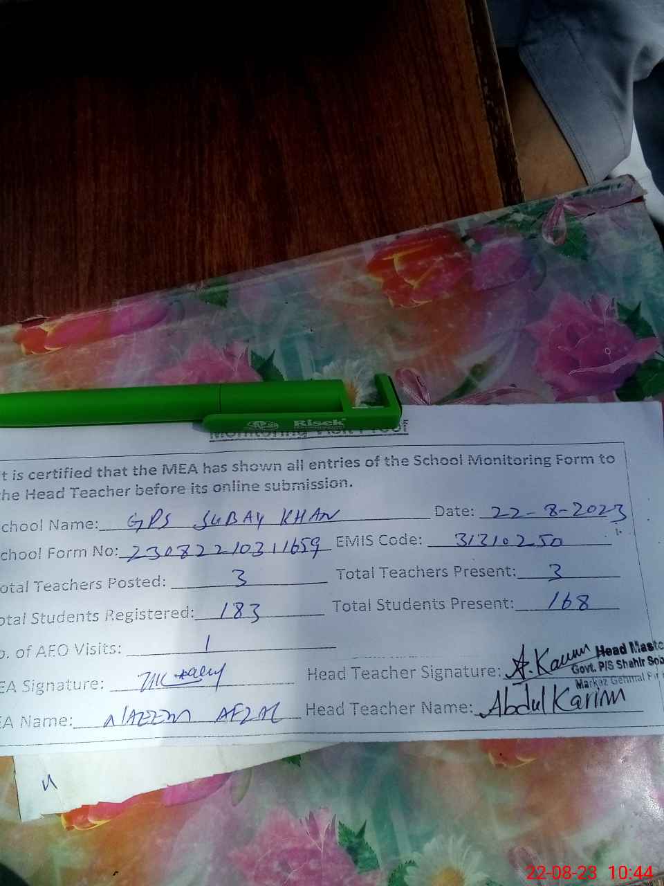 | EMIS Code: 31310250 | Name of School: GPS SHAHER SOBAY KHAN | |||