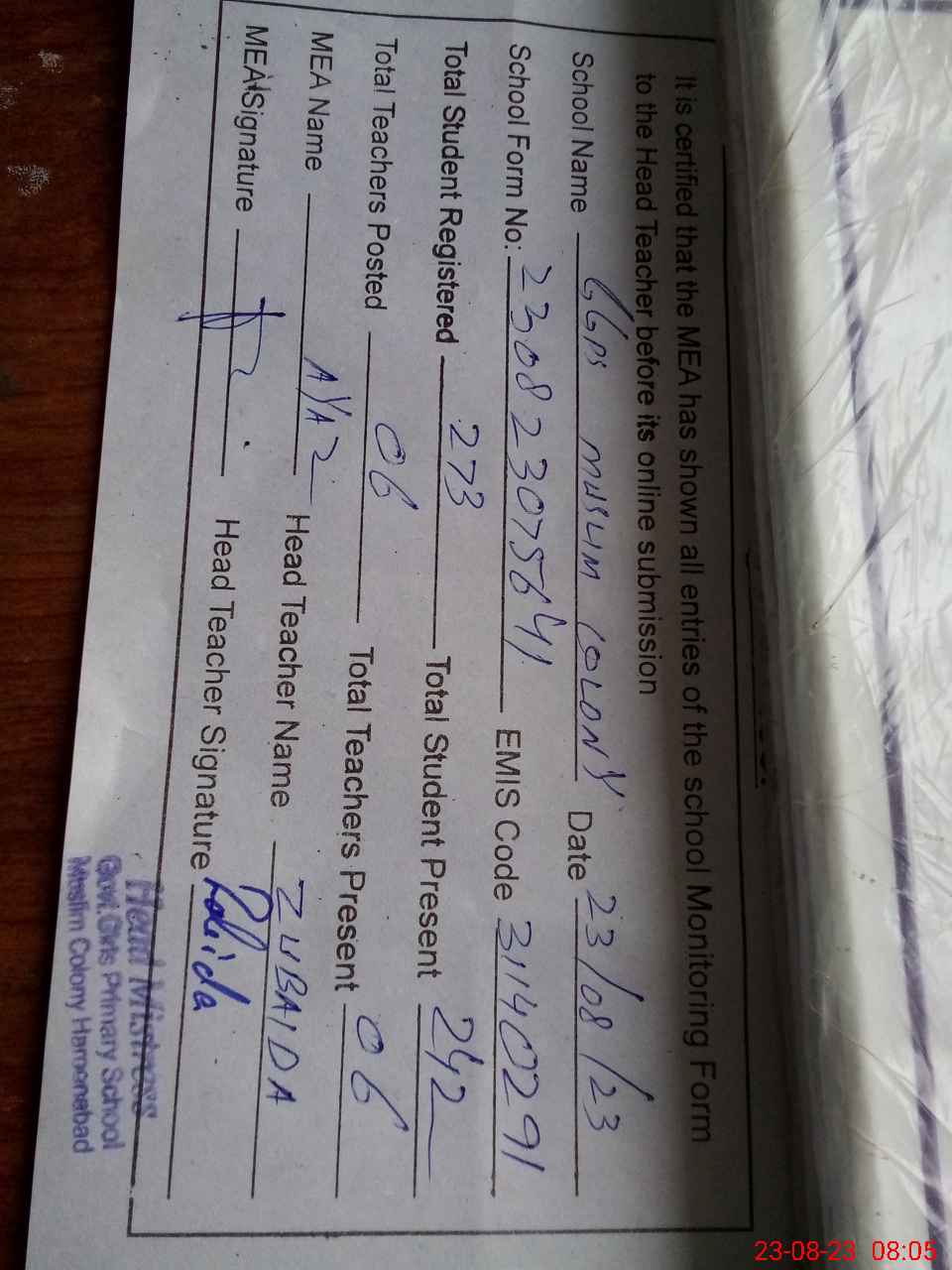 | EMIS Code: 31140291 | Name of School: GGPS MUSLIM COLONY HAROONABAD | |||