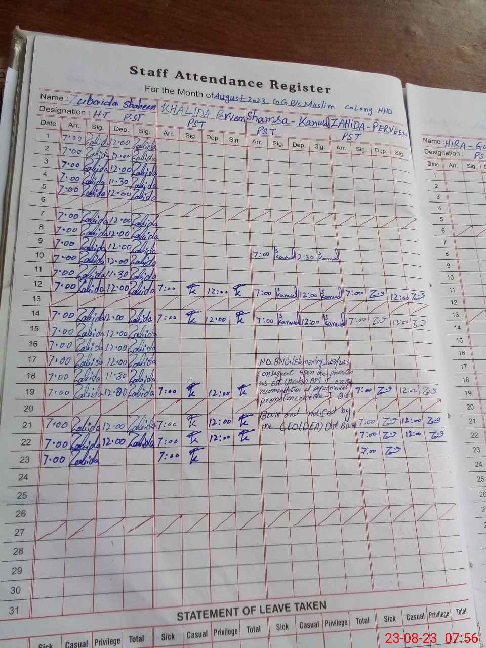 | Name: Zu**** Sh**** Designation: (School Headmaster's/Headmistress's) PST Phone/Cell Number: 03**** |