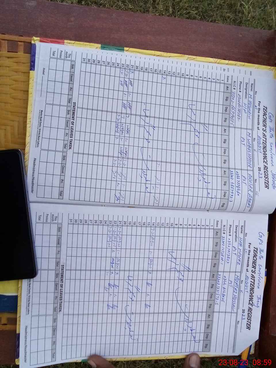 | Name: Mu**** Ha**** Designation: (School Headmaster's/Headmistress's) PST Phone/Cell Number: 03**** |