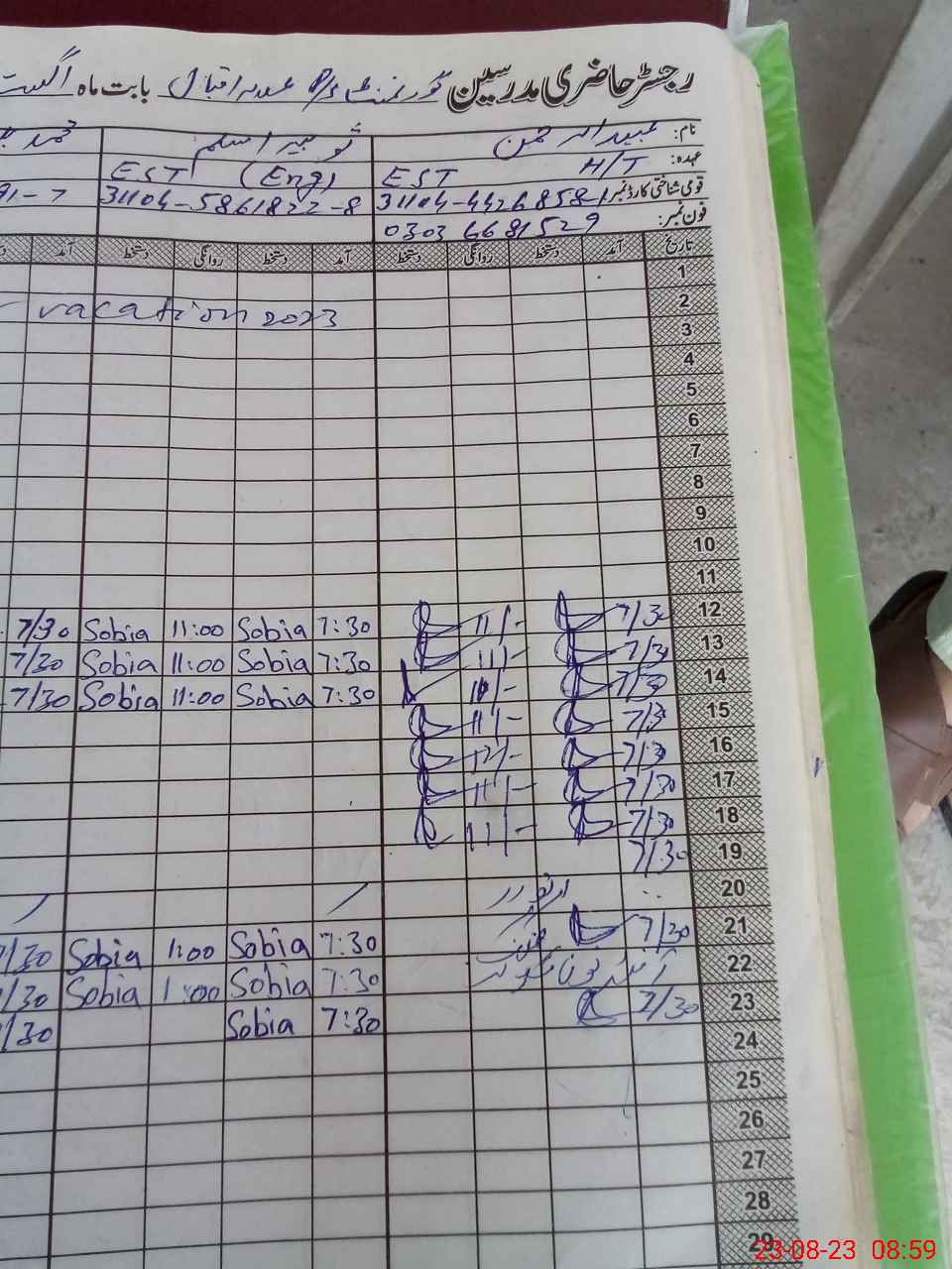 | Name: Mu**** Na**** Designation: (School Headmaster's/Headmistress's) PST Phone/Cell Number: 03**** |