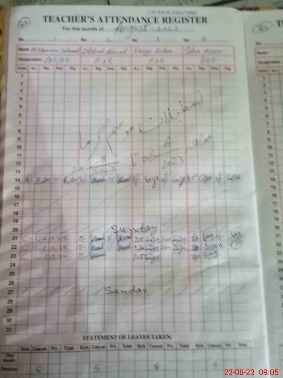 | CNIC | Full Name | Designation | R/C | Absence During Last Calender Month |