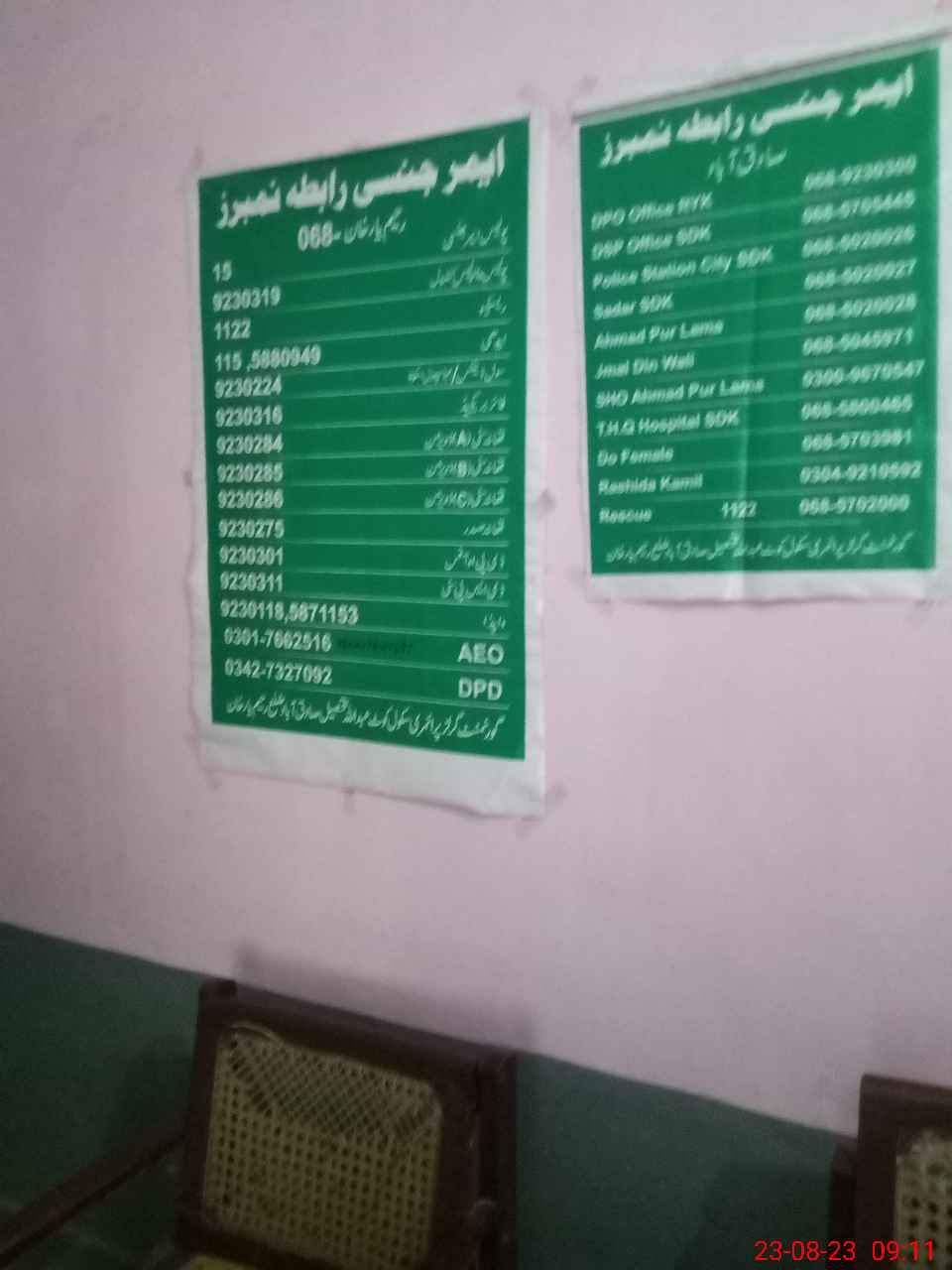 | District: RAHIMYAR KHAN | Tehsil: SADIQABAD | Markaz: BHUTTA WAHAN - FEMALE | Level: Primary | |