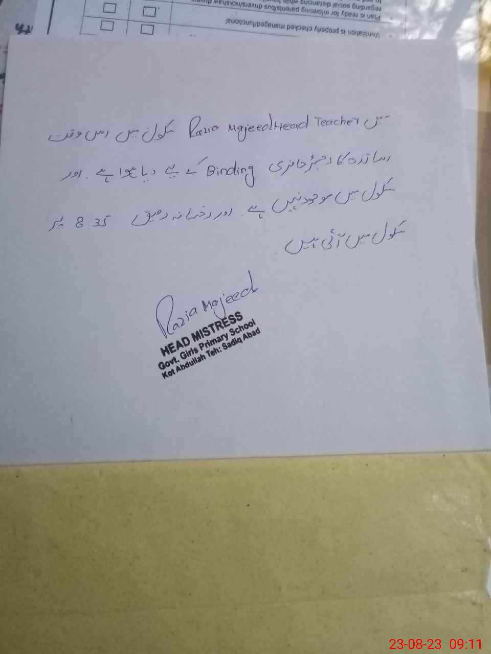 | Name: Ra**** Ma**** Designation: (School Headmaster's/Headmistress's) PST Phone/Cell Number: 03**** |