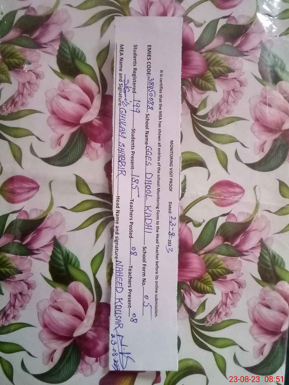 | EMIS Code: 38450088 | Name of School: GGES DHOOL KADHI | |||