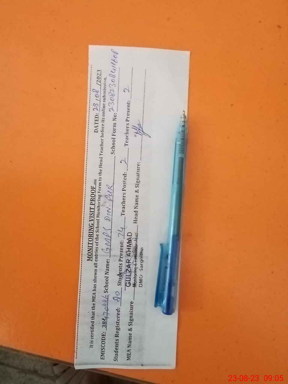 | Attendance Register | Head Teacher | MEA with School | Visit Proof |