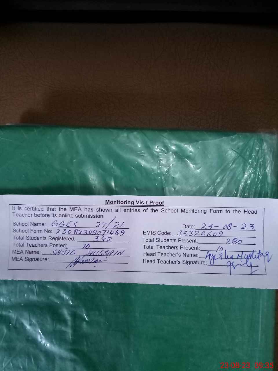 | EMIS Code: 39320609 | Name of School: GGES CHAK NO. 27/2-L | |||