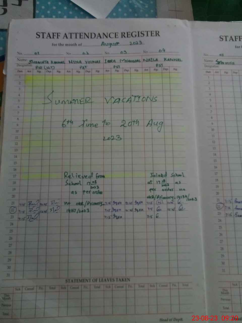 | Name: Sh**** Ka**** Designation: (School Headmaster's/Headmistress's) PST Phone/Cell Number: 03**** |