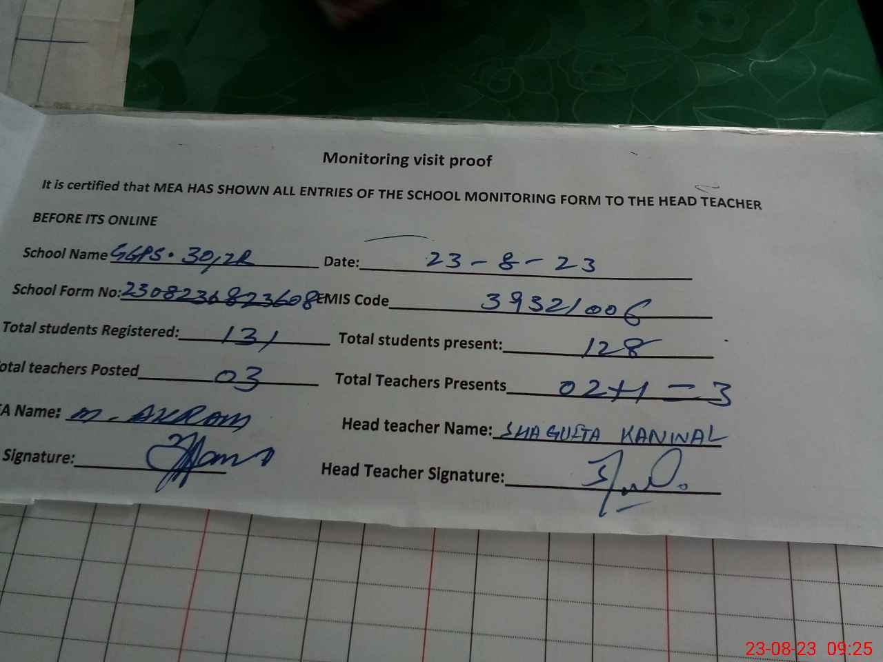| EMIS Code: 39321006 | Name of School: GGPS KOTHAY 30/2-R | |||