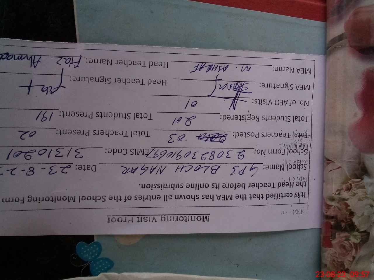 | EMIS Code: 31310201 | Name of School: GPS BALUCH NAGAR (After Noon) | |||