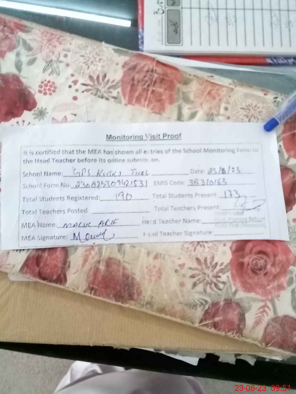 | EMIS Code: 38310163 | Name of School: GPS KUTKI THAL | |||