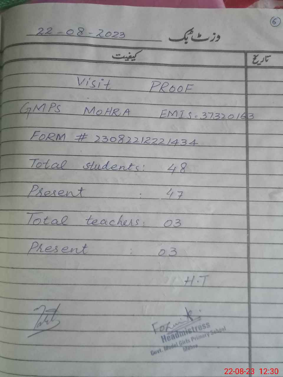 | EMIS Code: 37320163 | Name of School: GMPS MOHRA | |||