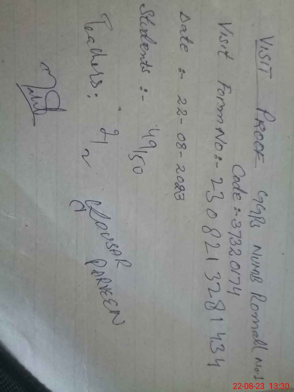 | Attendance Register | Head Teacher | MEA with School | Visit Proof |