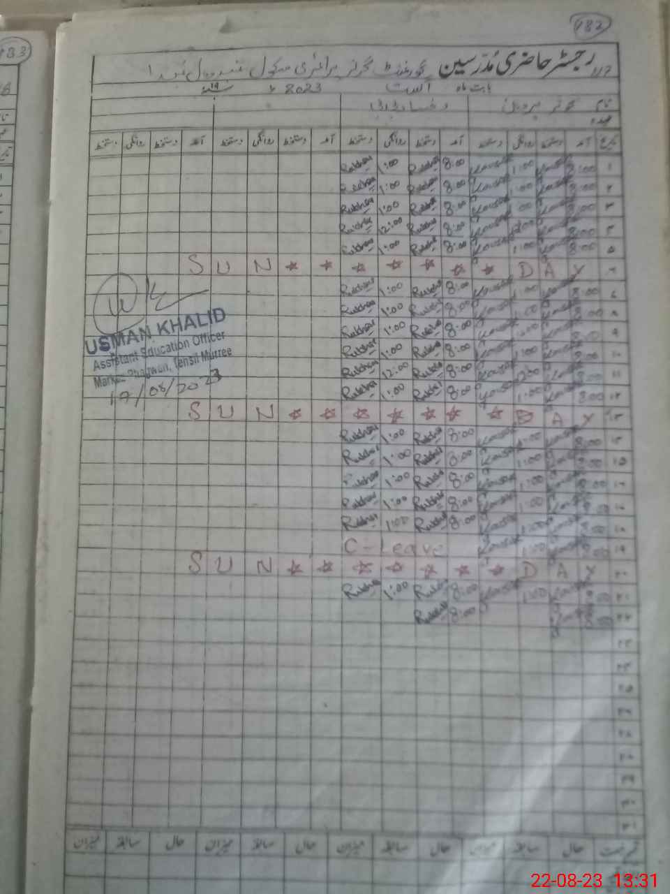 | CNIC | Full Name | Designation | R/C | Absence During Last Calender Month |