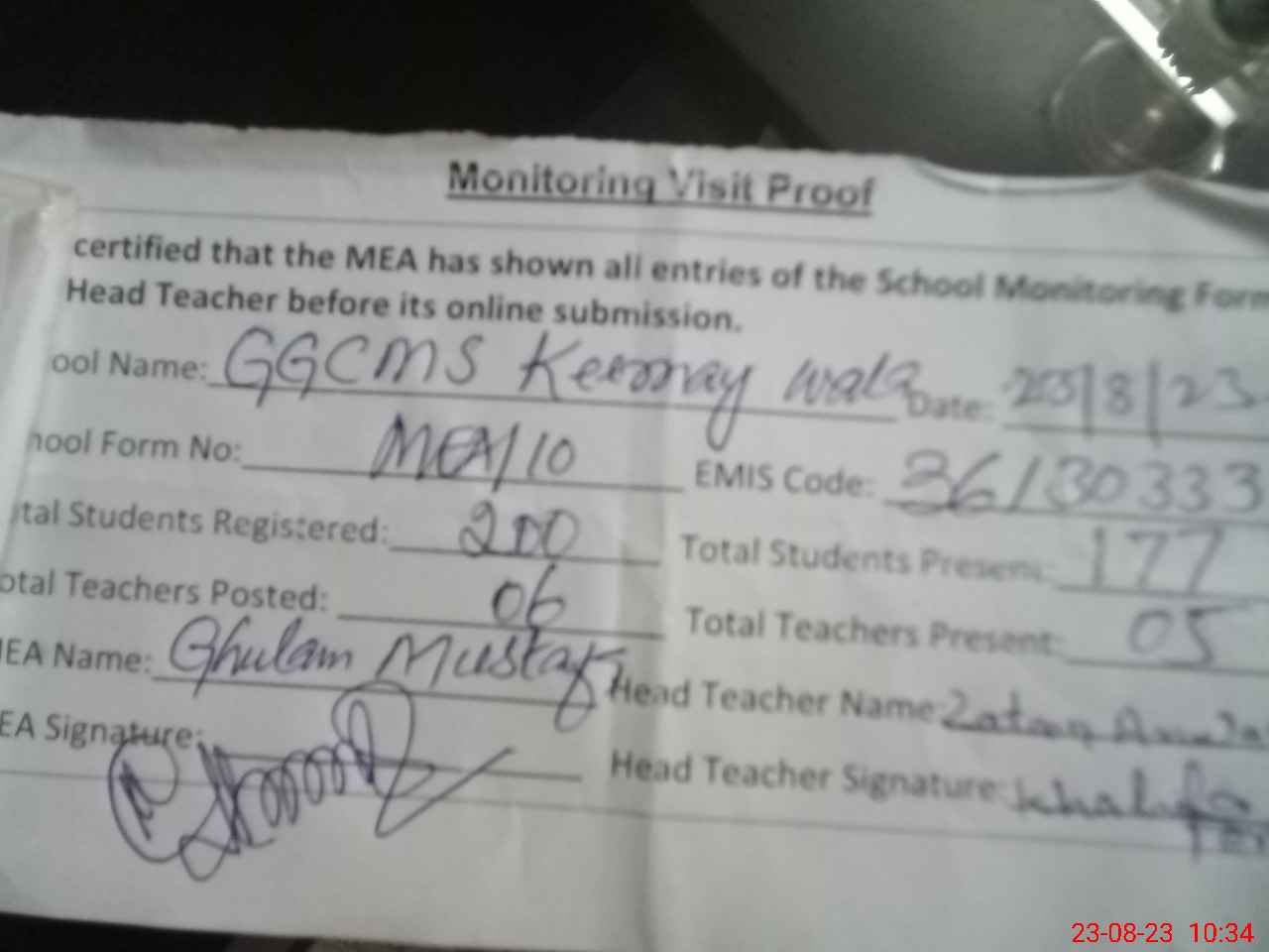 | EMIS Code: 36130333 | Name of School: GGCMS KEEMAY WALA BASTI NAU | |||