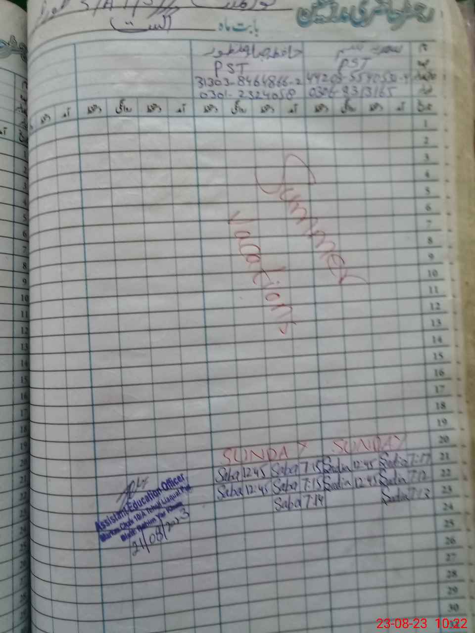 | Name: SA**** TA**** Designation: (School Headmaster's/Headmistress's) PST Phone/Cell Number: 03**** |