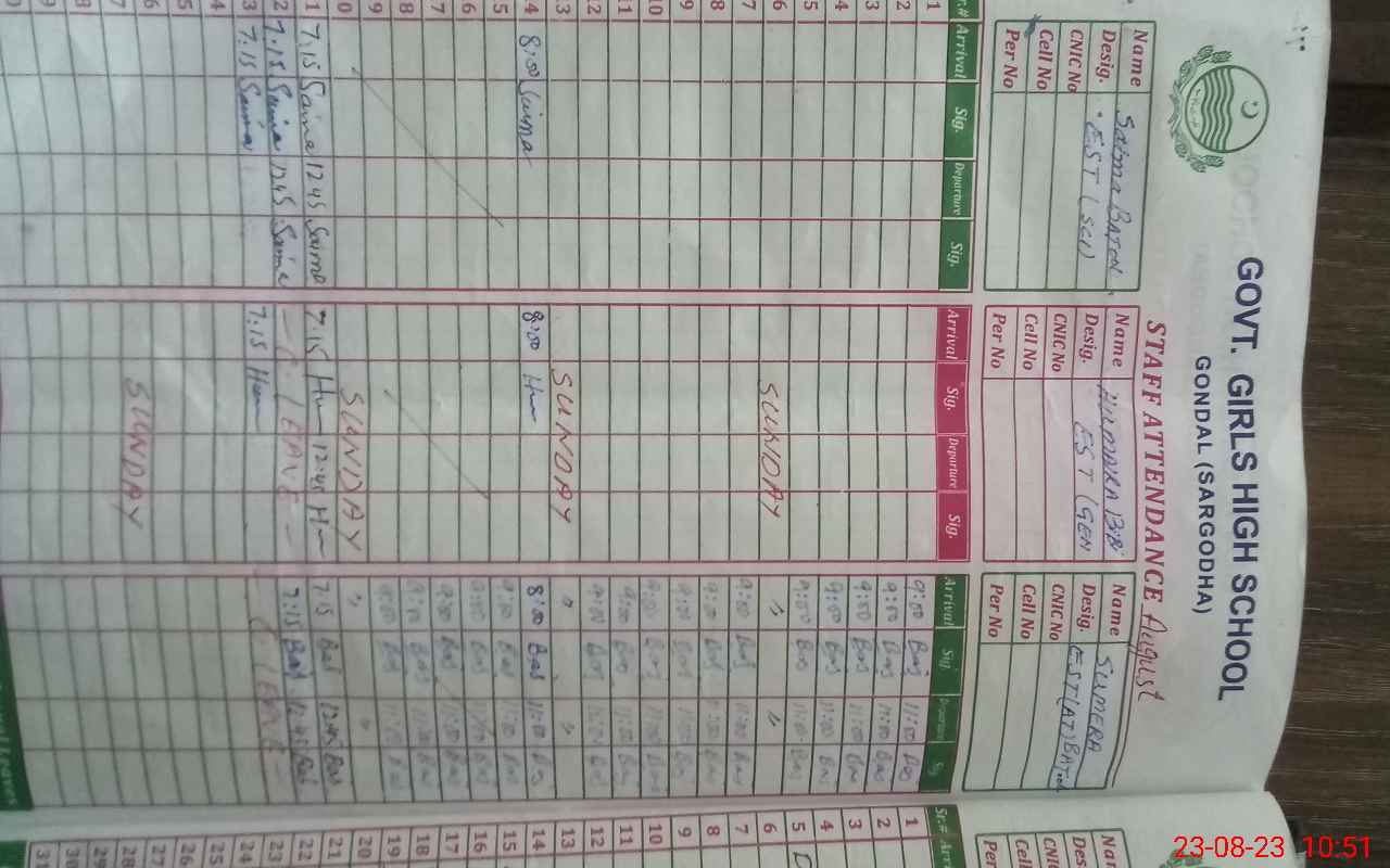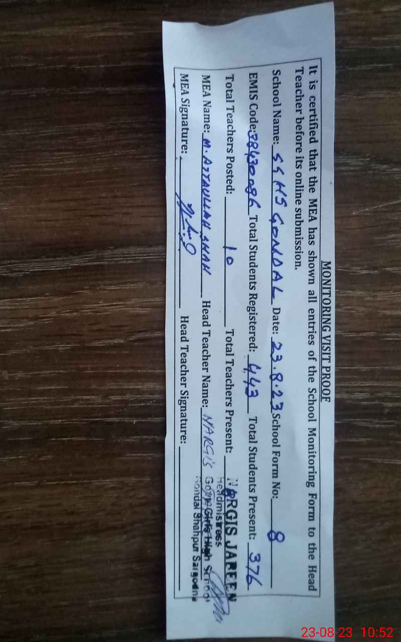 | EMIS Code: 38430086 | Name of School: GGHS GONDAL | |||