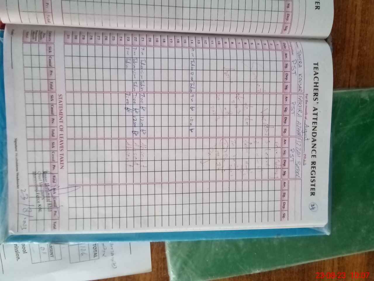 | 36**** | Fi**** Ba**** | PST | Regular | 0 | 0 | 31 | 0 | 0 | 0 | 0 | 0 | 0 | Absent (Un-Authorized) |