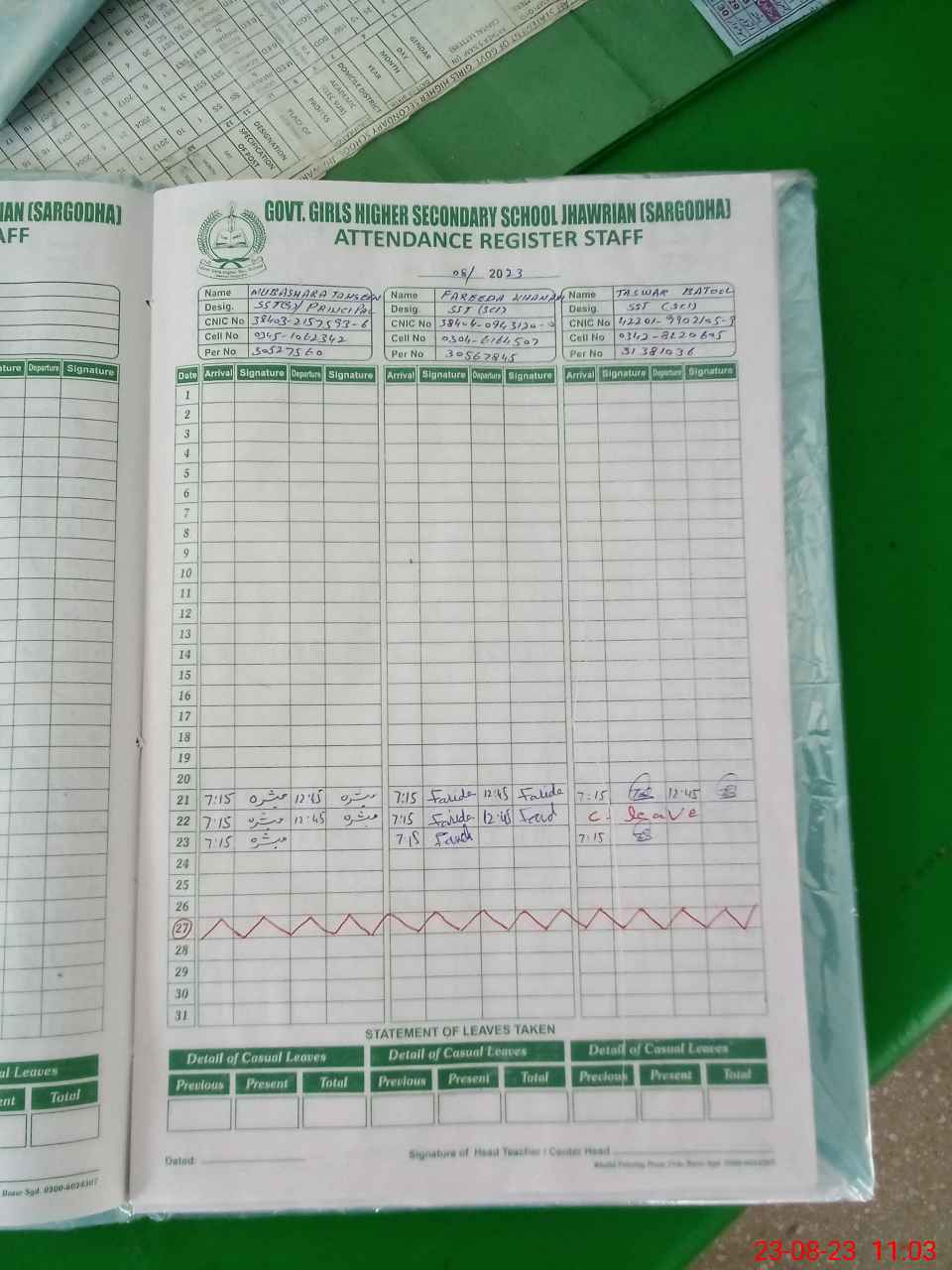 | Name: FA**** KH**** Designation: (School Headmaster's/Headmistress's) Principal Phone/Cell Number: 03**** |