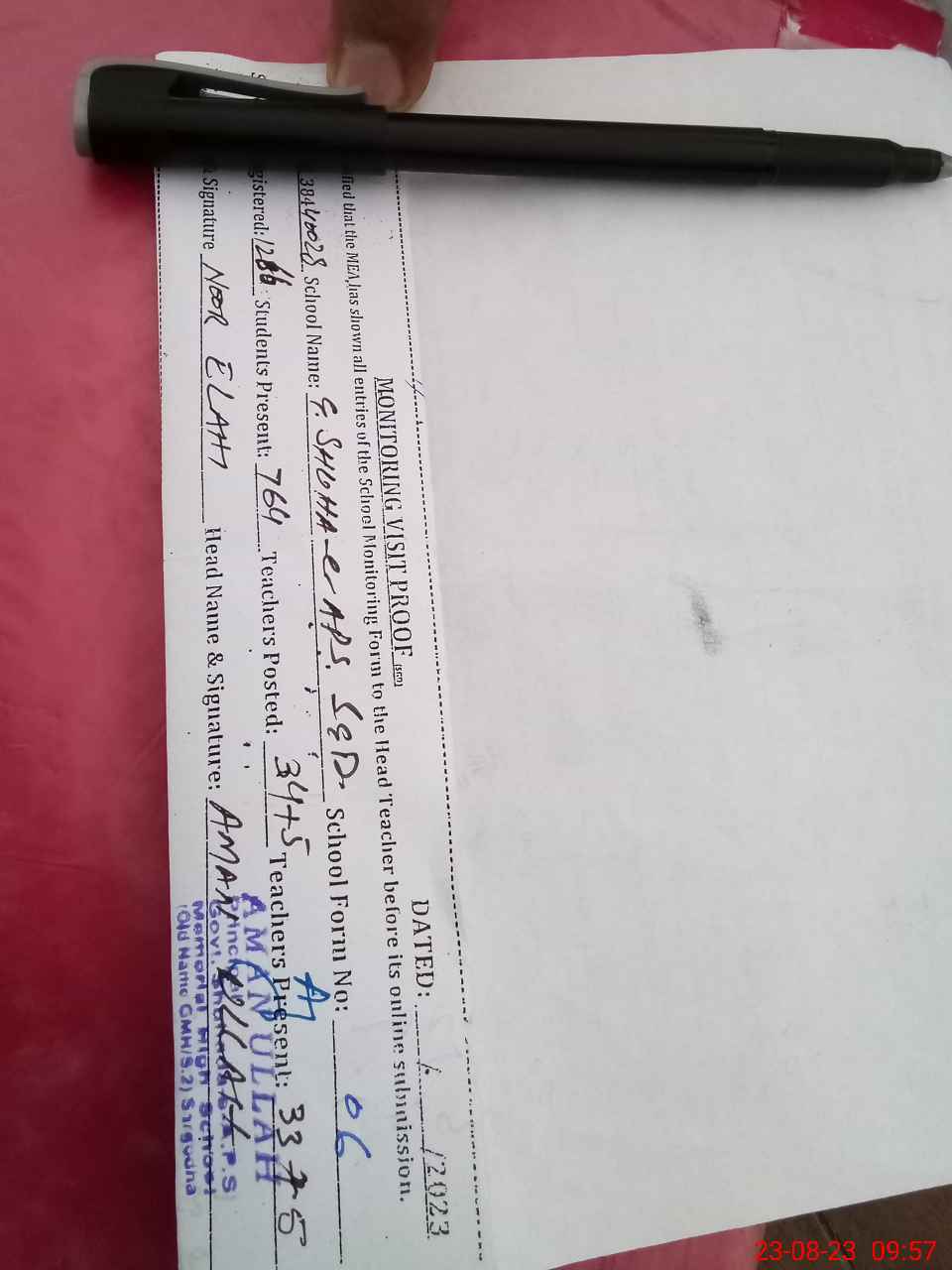 | Certified that this School was Inspected by the Undersigned MEA/DMO Today and the Information Stated Above is as Per Record. | |||||
