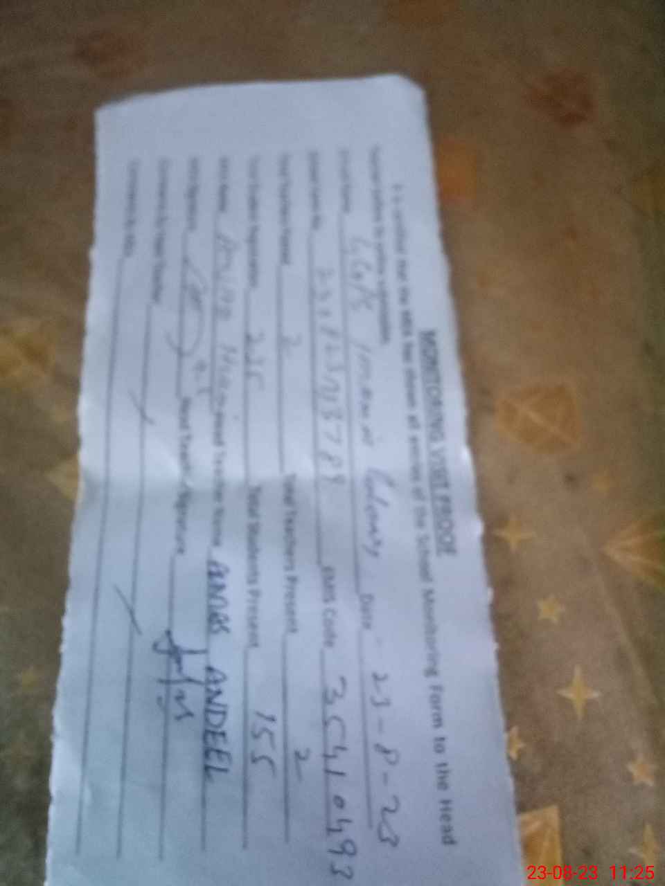 | Name: AL**** AN**** Designation: (School Headmaster's/Headmistress's) PST Phone/Cell Number: 03**** |