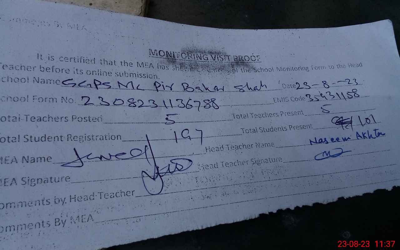 | EMIS Code: 35431158 | Name of School: GGPS MC PIR BAHAR SHAH | |||