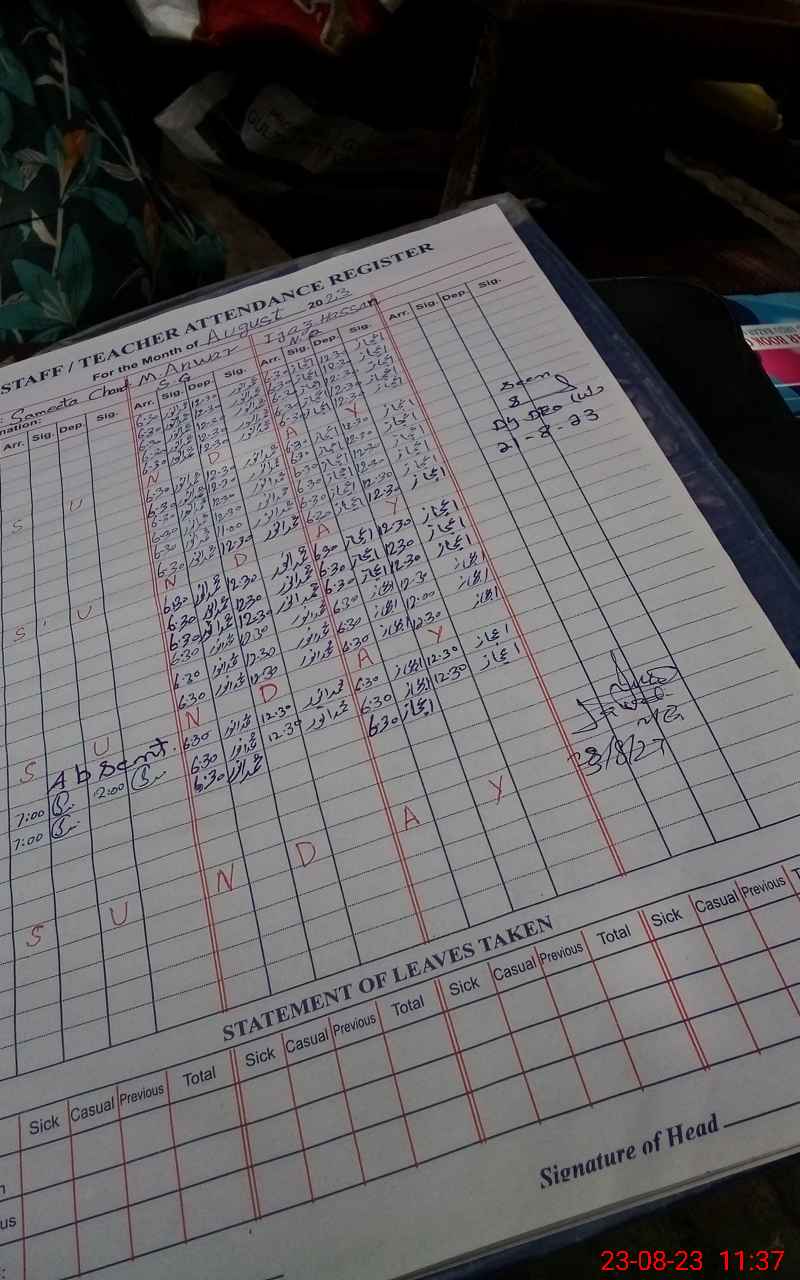 | Name: NA**** AK**** Designation: (School Headmaster's/Headmistress's) PST Phone/Cell Number: 03**** |