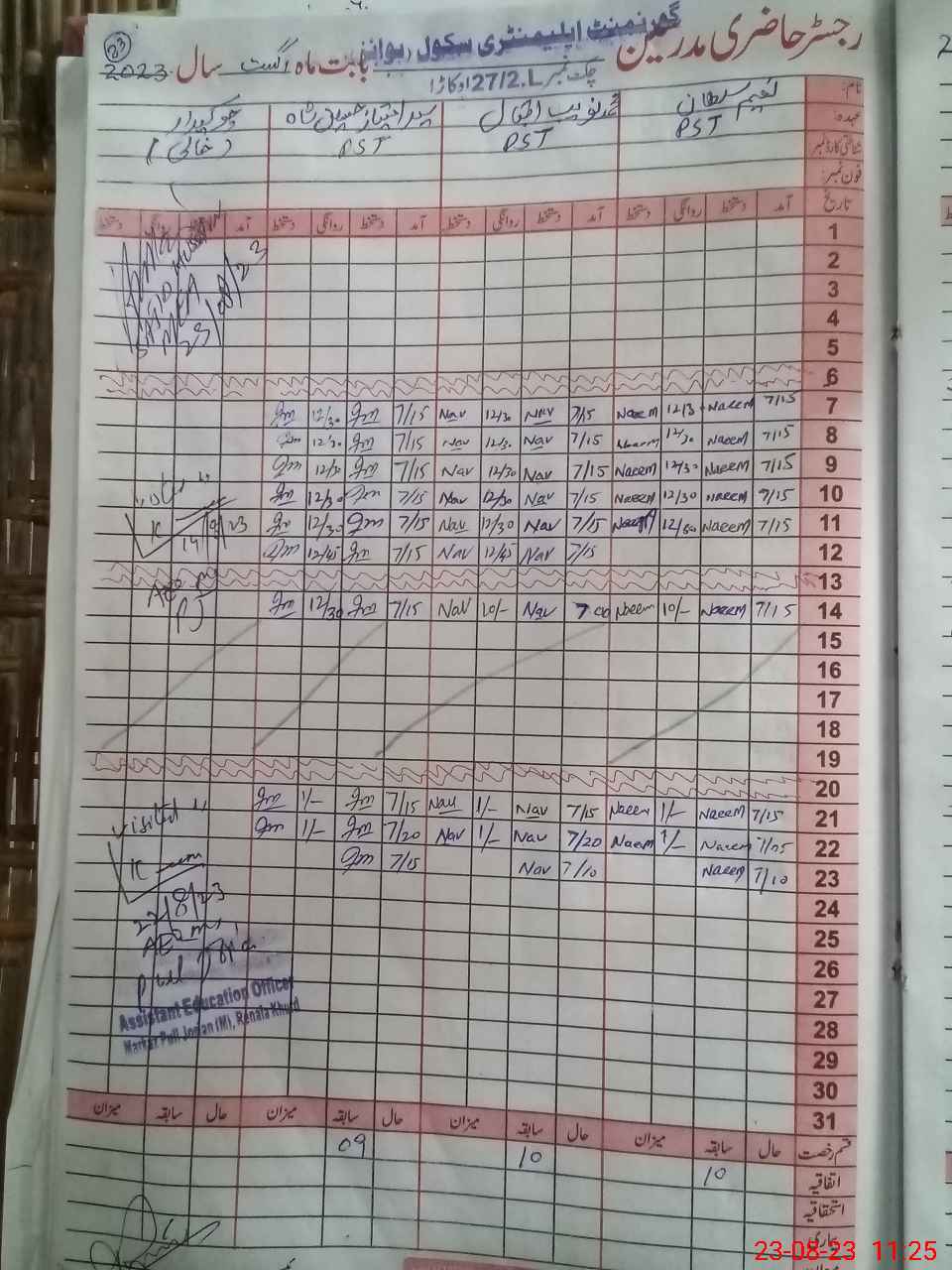 | No. of Students Present - Male | 0 | 0 | 49 | 28 | 33 | 34 | 32 | 27 | 34 | 29 | 22 | 288 | ||||